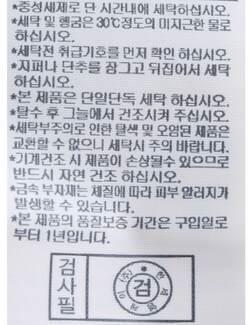 세탁방법 및 취급시 주의사항 중성세제로 단 시간내에 세탁하십시오.(케어라벨참고)