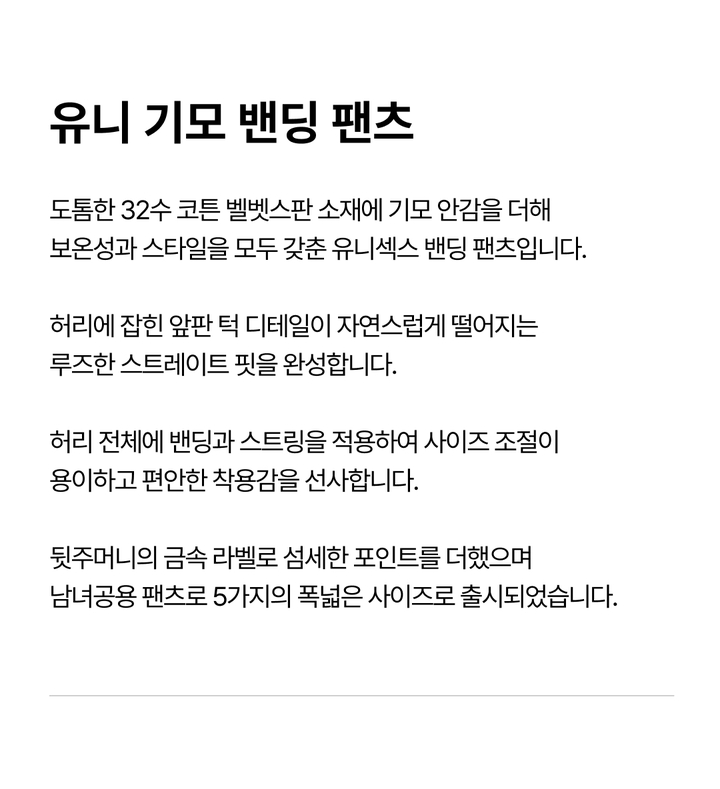 | 상품명 | 유니 기모 밴딩 팬츠(B254Z2010P) |
