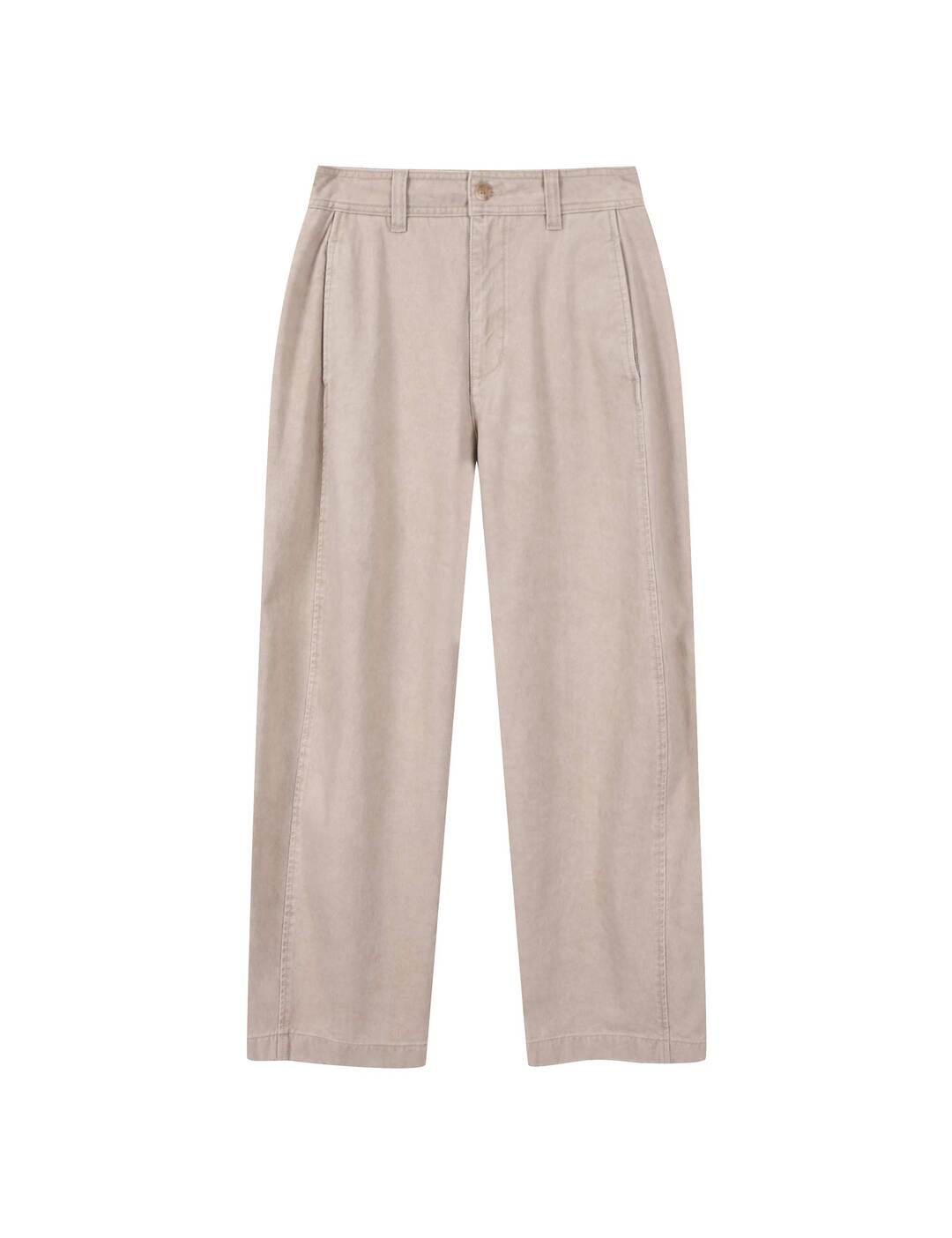 피그먼트 다잉과 바이오 워싱으로 빈티지한 무드를 더한 배럴핏 팬츠