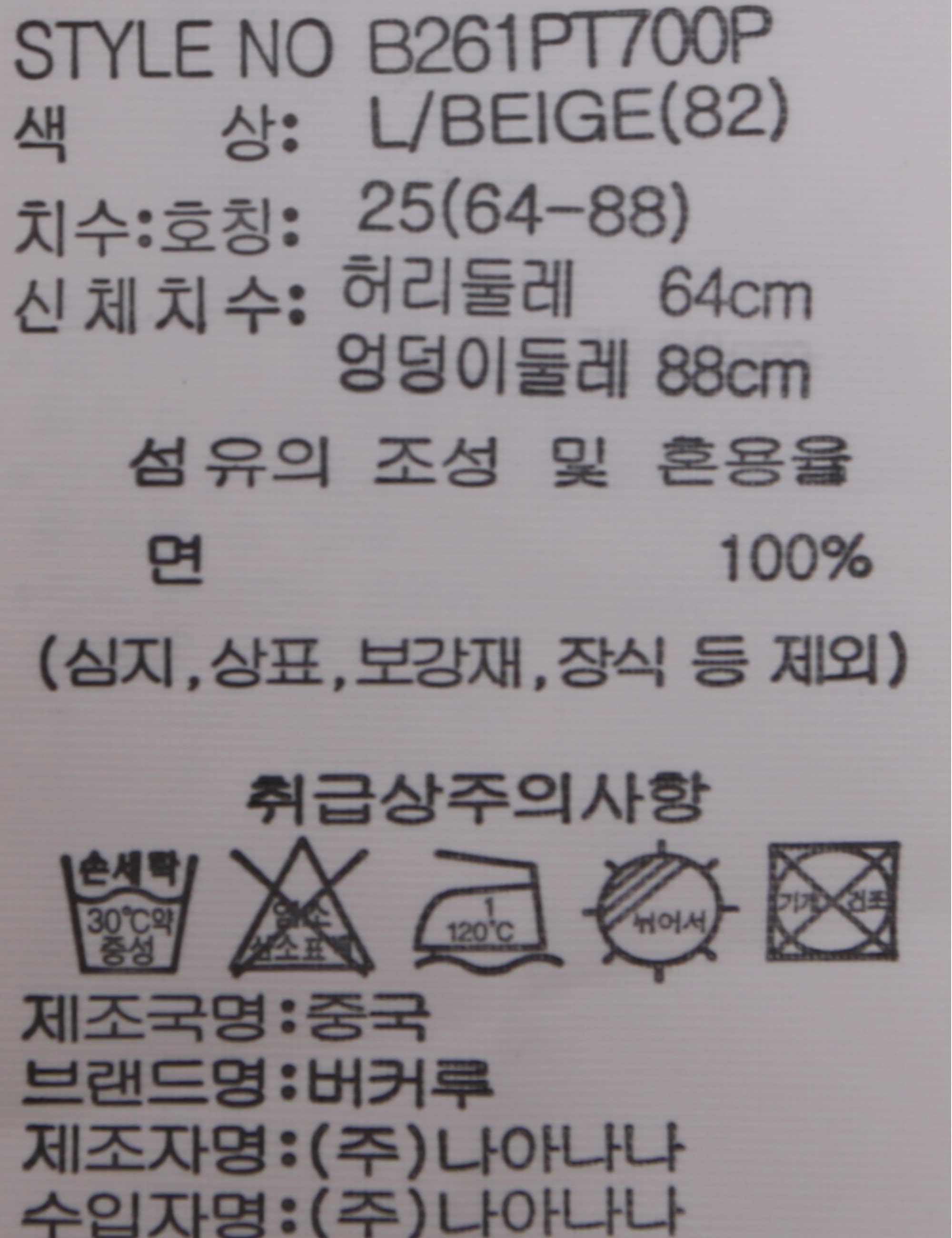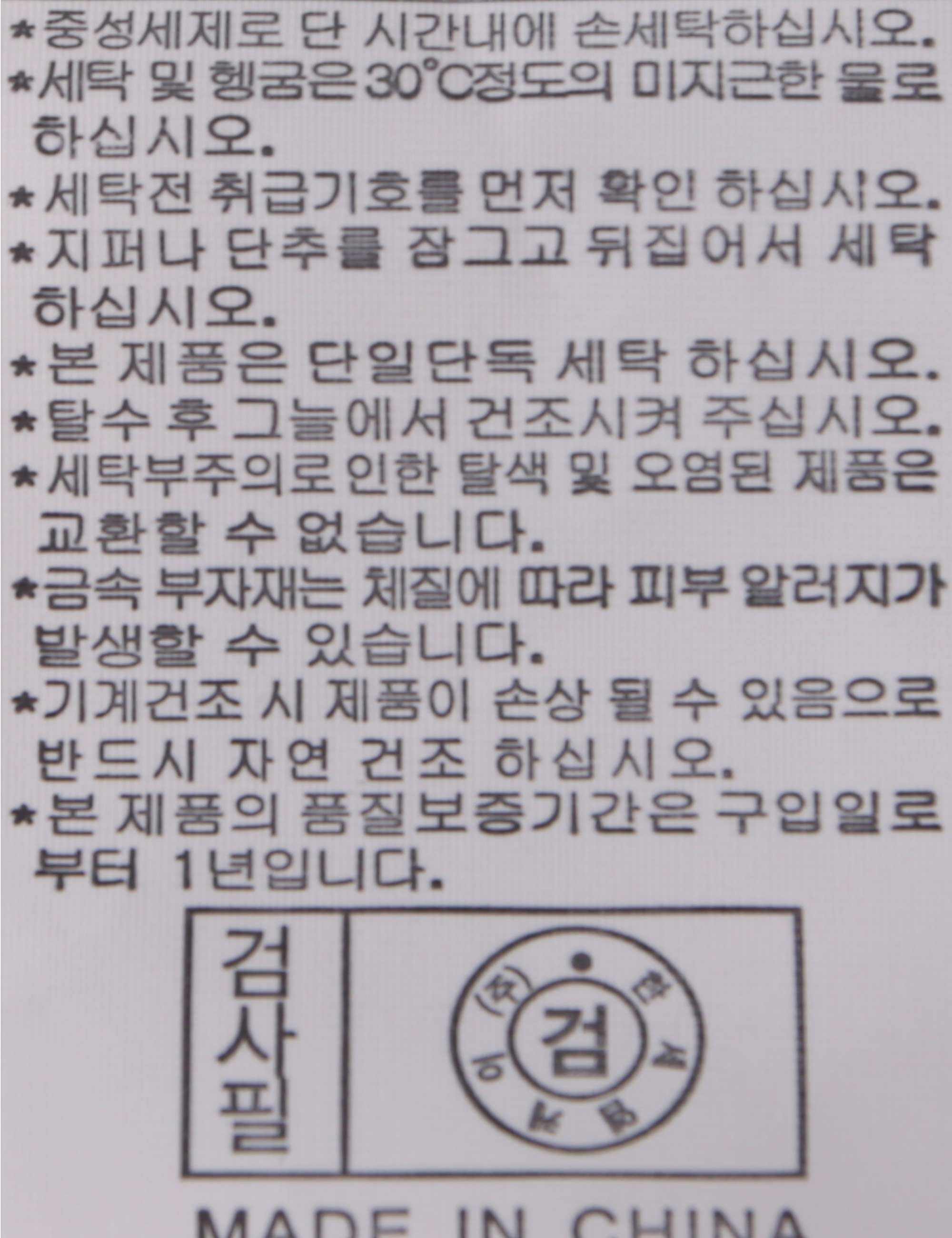 | 세탁방법 및 취급시 주의사항 | 본 제품은 손세탁 하십시오.(케어라벨참고) |