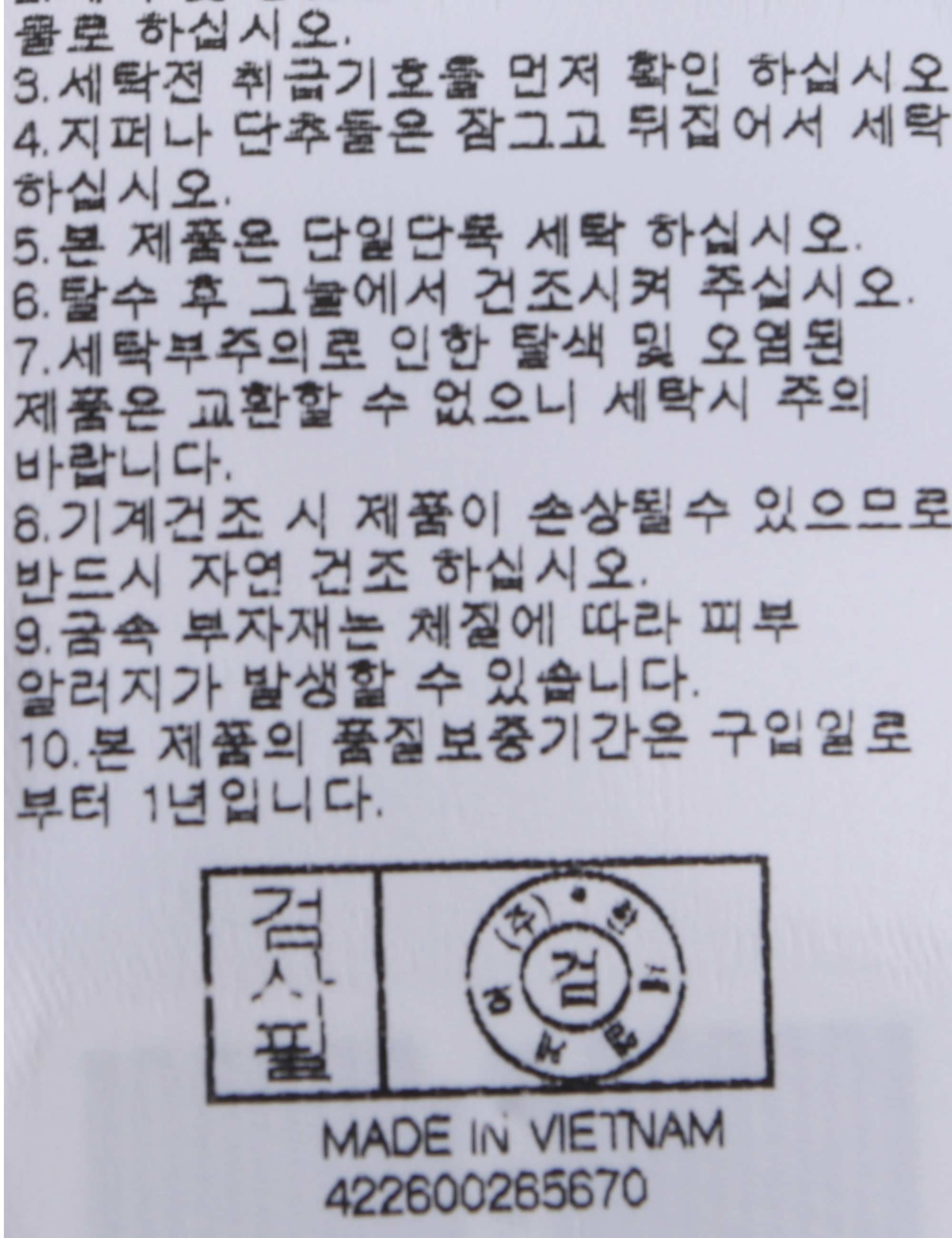 세탁방법 및 취급시 주의사항 중성세제로 단 시간내에 세탁하십시오.(케어라벨참고)