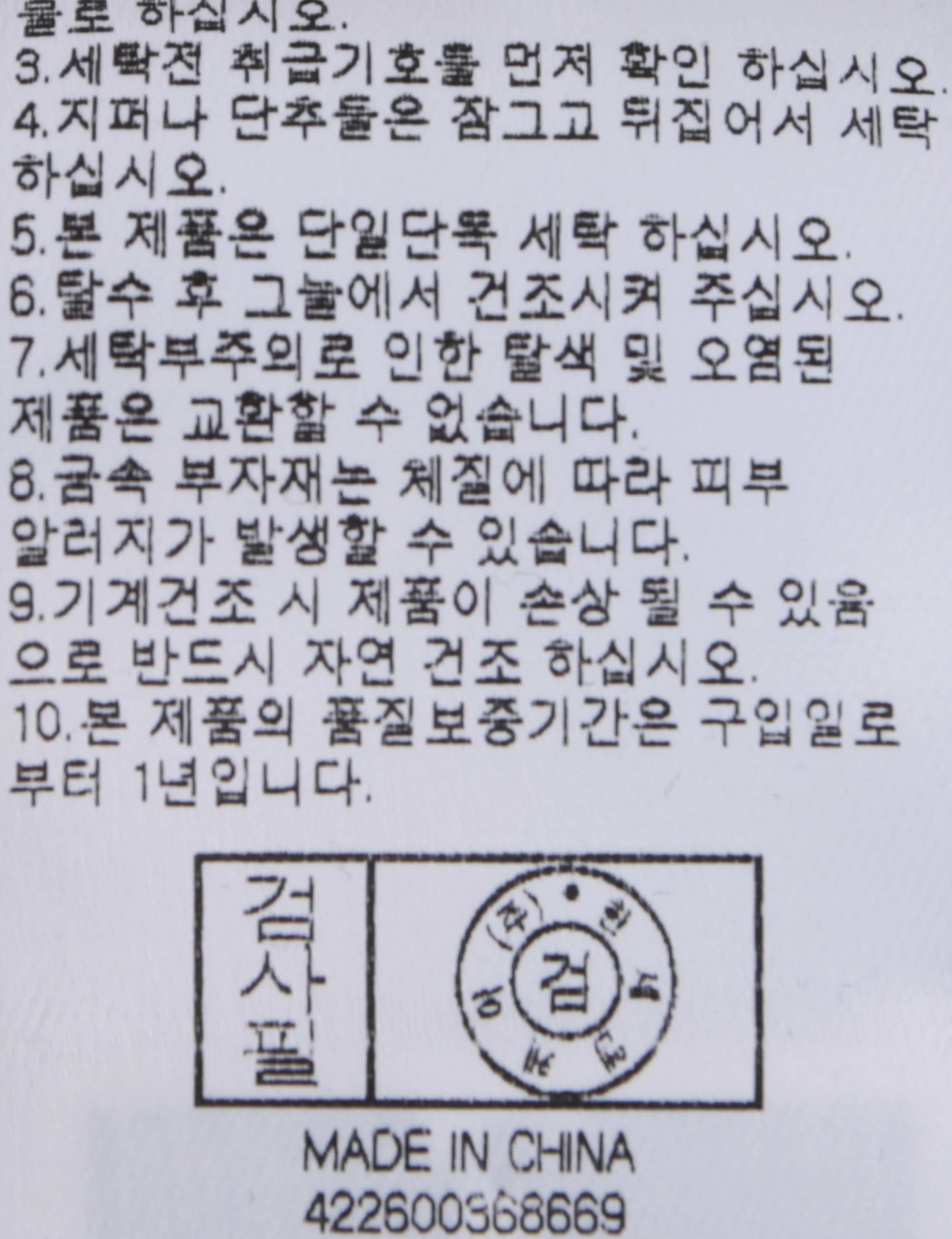 | 세탁방법 및 취급시 주의사항 | 본 제품은 손세탁 하십시오.(케어라벨참고) |