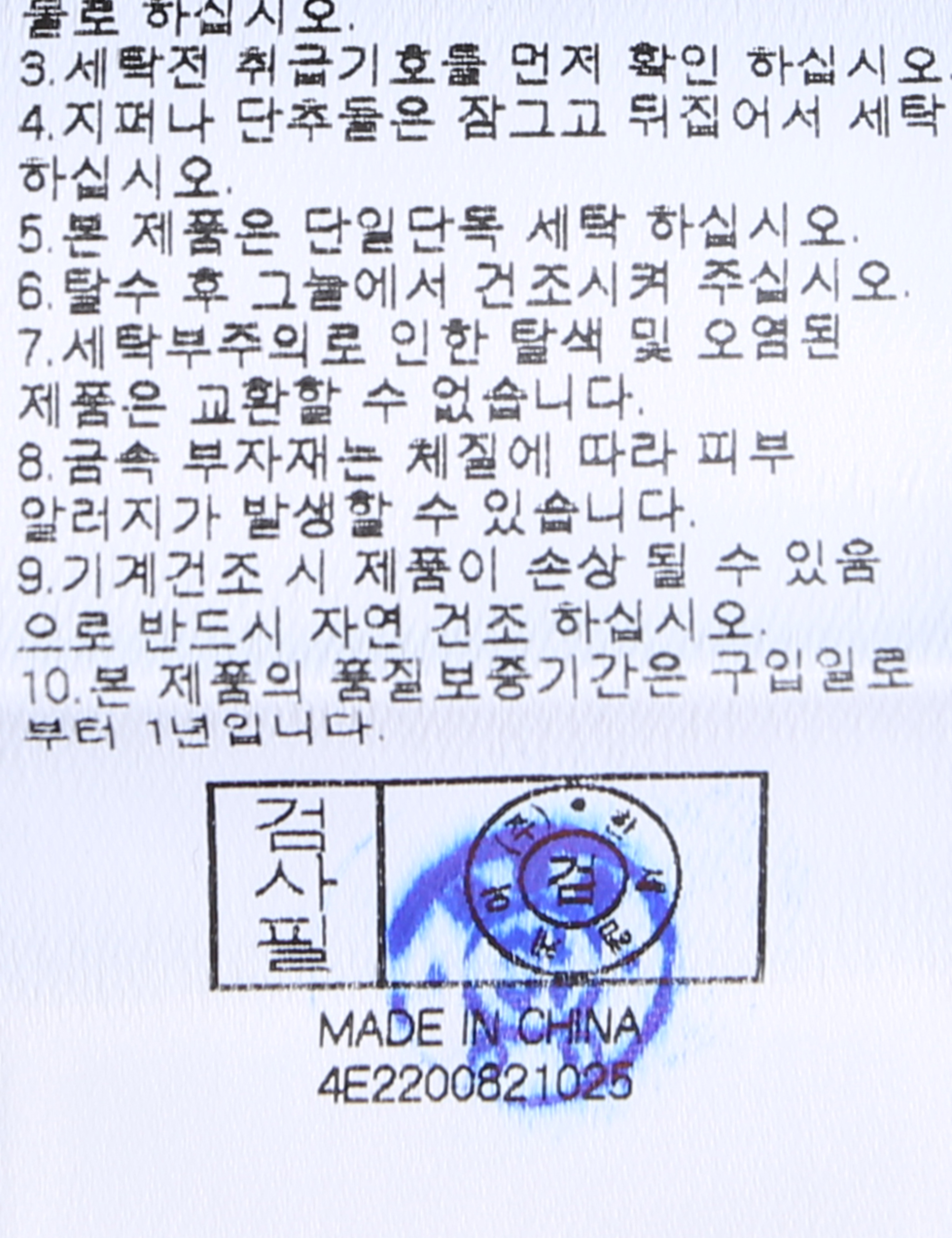 | 세탁방법 및 취급시 주의사항 | 본 제품은 손세탁 하십시오.(케어라벨참고) |
