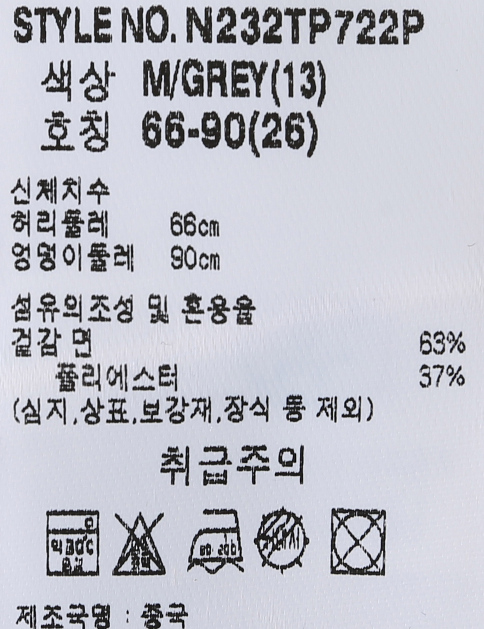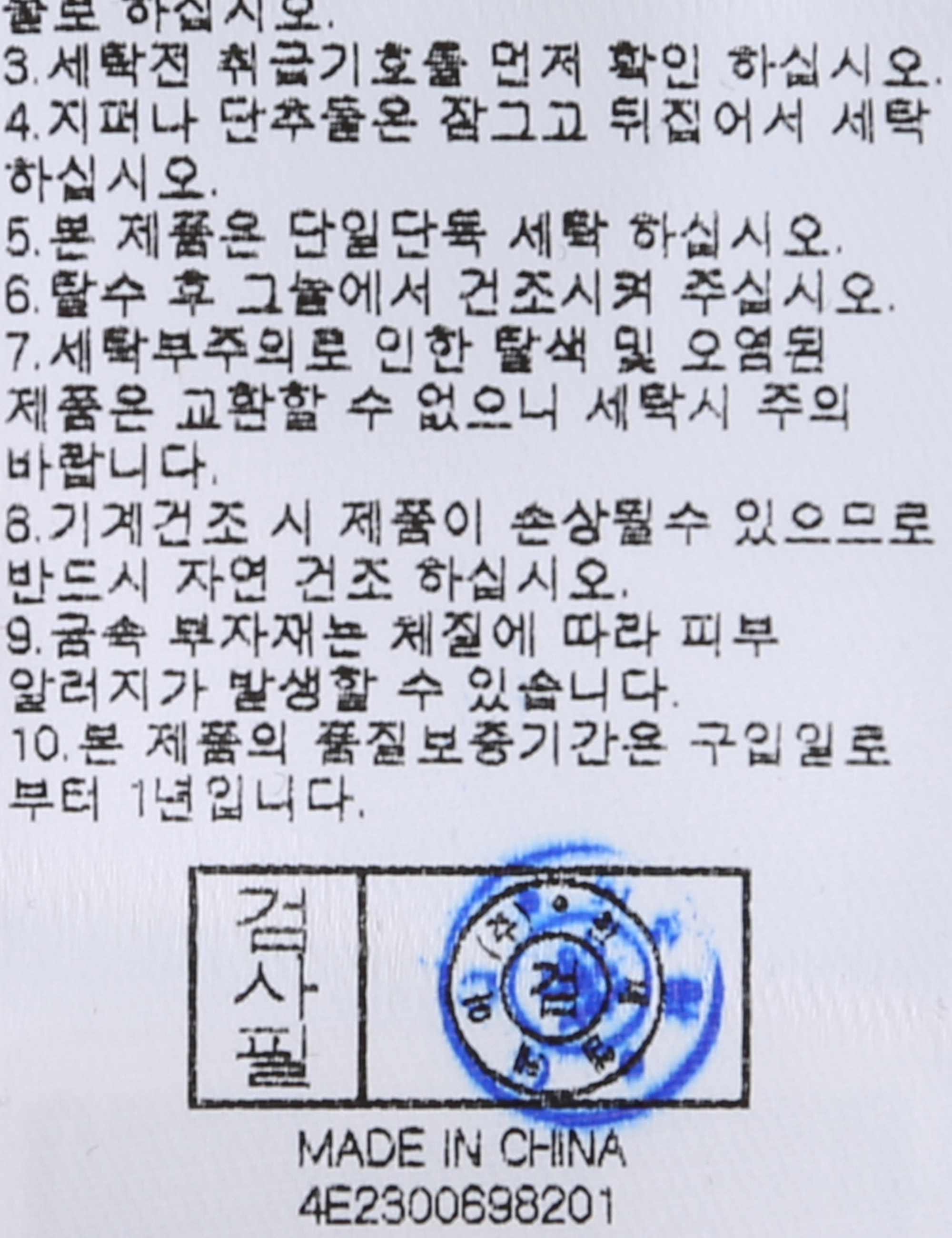 세탁방법 및 취급시 주의사항 중성세제로 단 시간내에 세탁하십시오.(케어라벨참고)