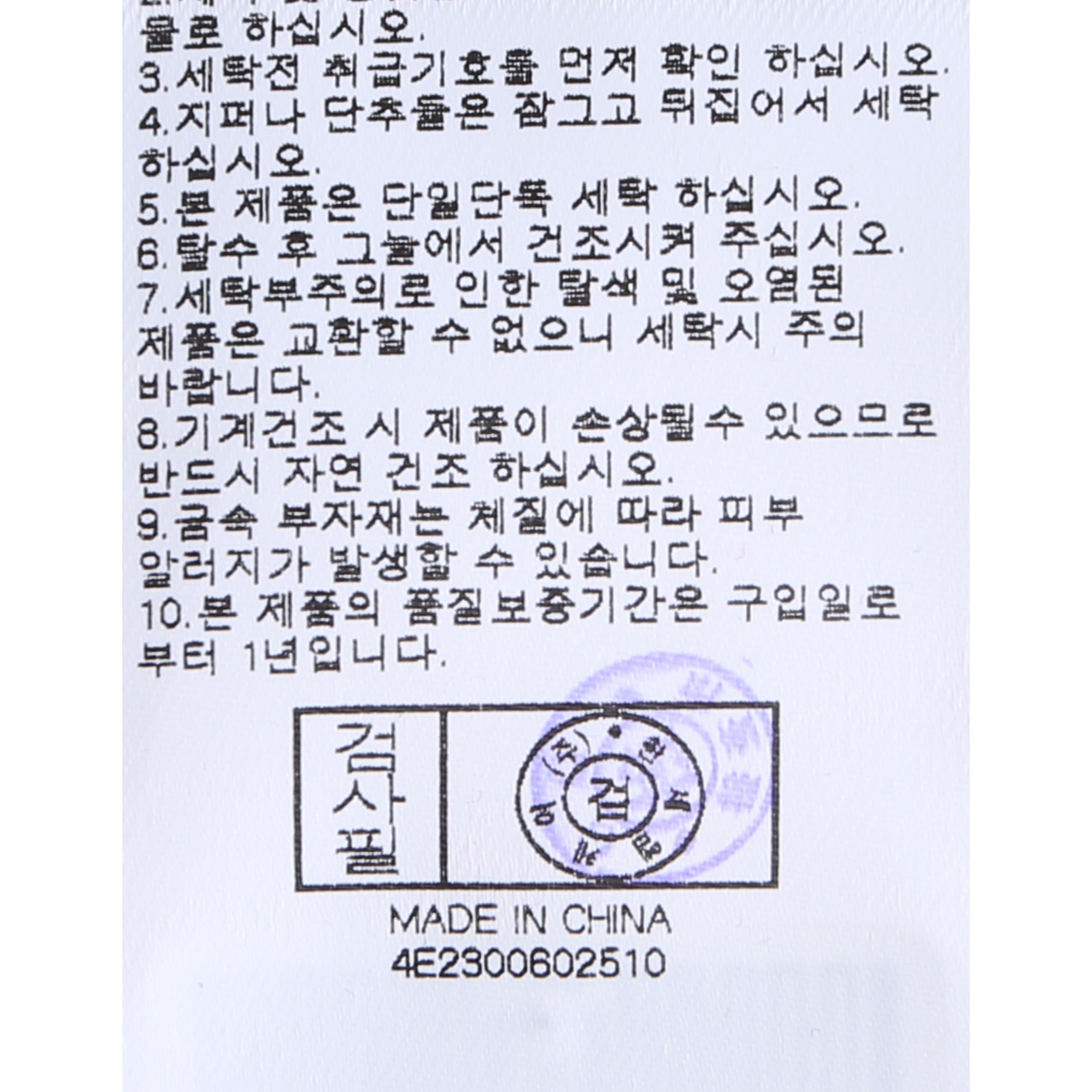 | 세탁방법 및 취급시 주의사항 | 중성세제로 단 시간내에 세탁하십시오.(케어라벨참고) |