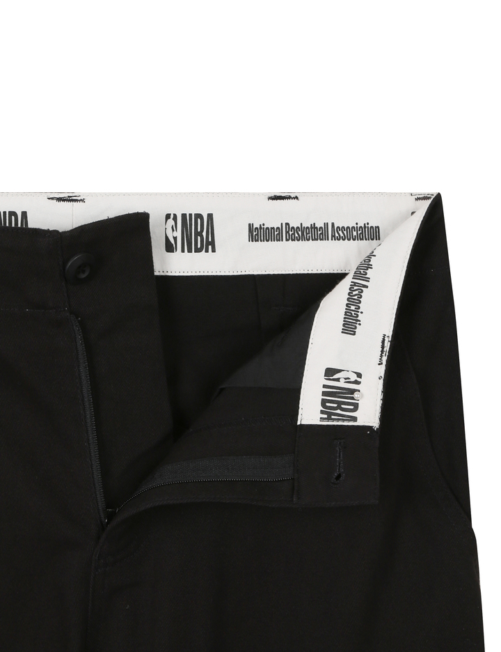 카고포켓에 깔끔한 자수 그래픽과 허리 안쪽에 NBA 로고 프린트로 포인트를 가미하여 허리단을 접어 입어 포인트를 줄 수 있다.