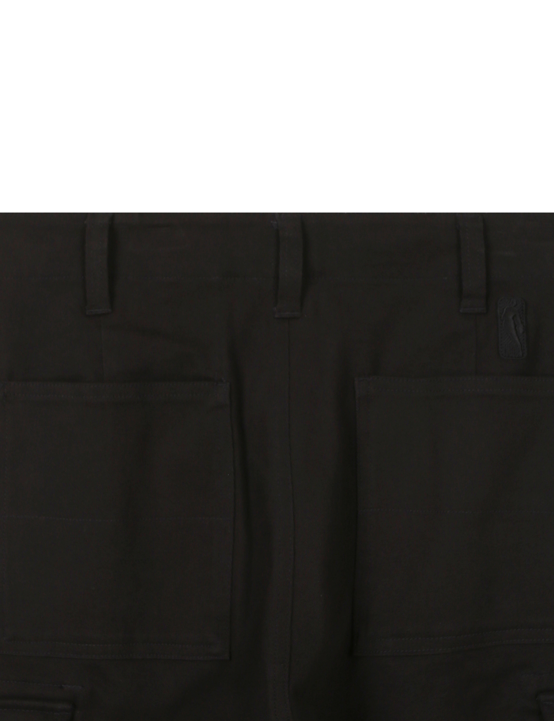 밀리터리 감성의 카고 포켓과 밑단 사이즈를 조절할 수 있는 스트링이 내장되어 있음.