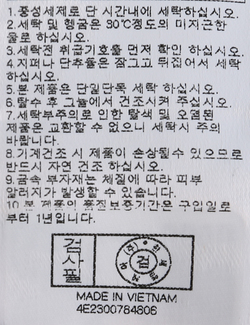 | 세탁방법 및 취급시 주의사항 | 중성세제로 단 시간내에 세탁하십시오.(케어라벨참고) |