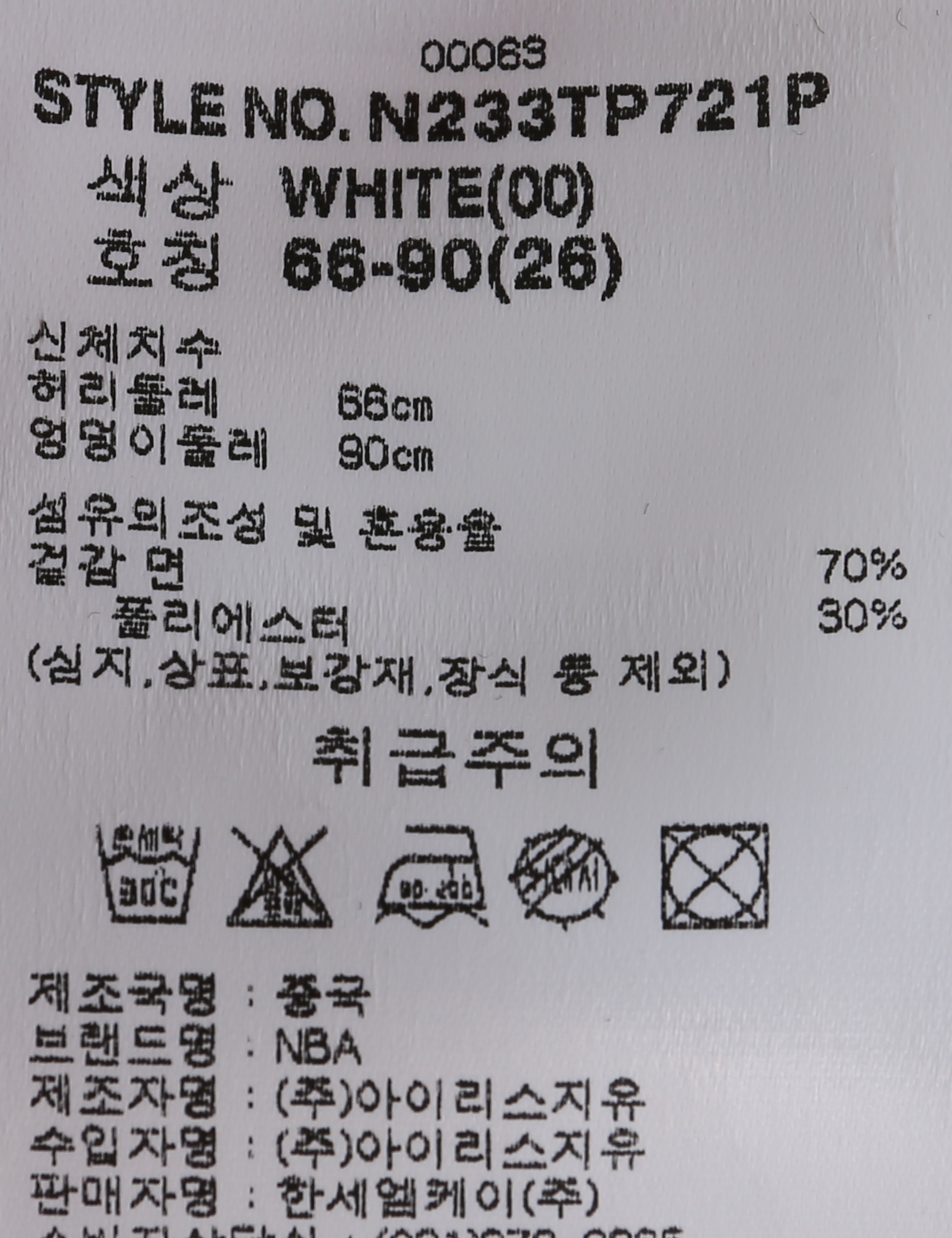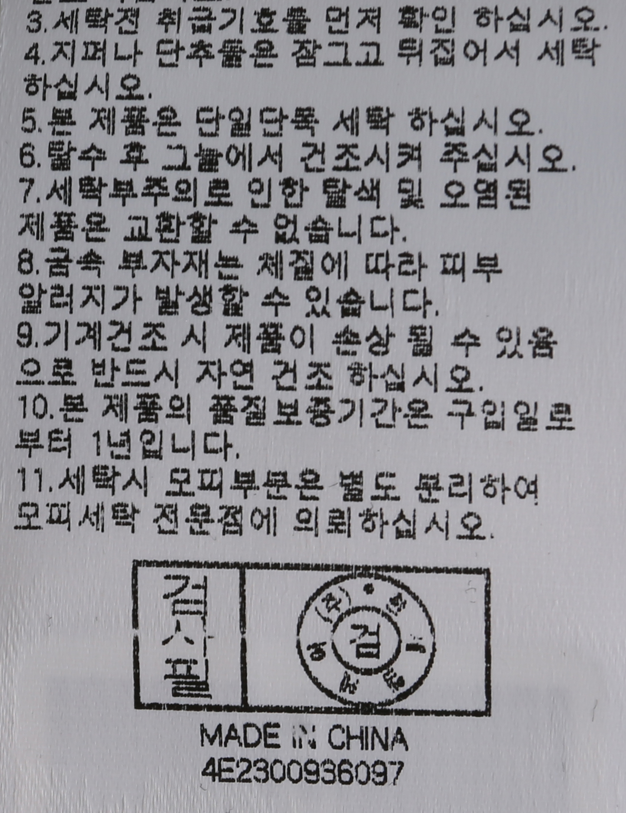 | 세탁방법 및 취급시 주의사항 | 본 제품은 손세탁 하십시오.(케어라벨참고) |