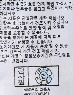 세탁방법 및 취급시 주의사항 본 제품은 손세탁 하십시오.(케어라벨참고)