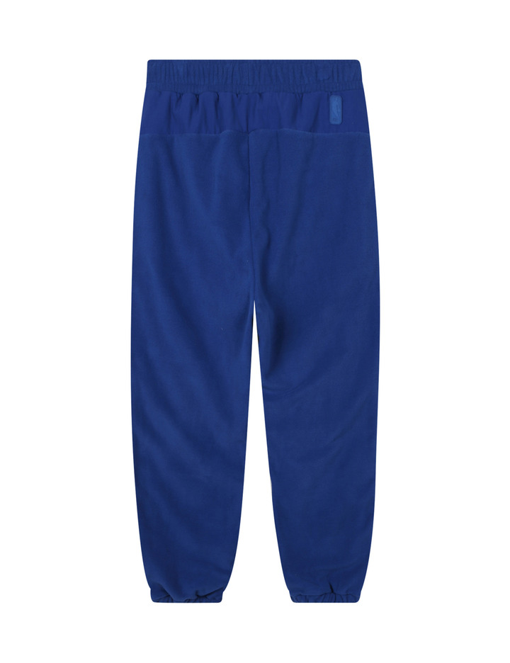 소프트한 터치감의 폴라폴리스 원단에 나일론 원단을 배색하여 캐주얼함과 트렌디함이 돋보이는 착장으로 연출 가능한 조거팬츠. 자수 아트웍 포인트가 멋스러움.