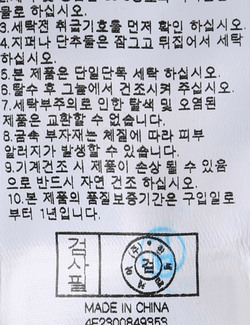 | 세탁방법 및 취급시 주의사항 | 본 제품은 손세탁 하십시오.(케어라벨참고) |