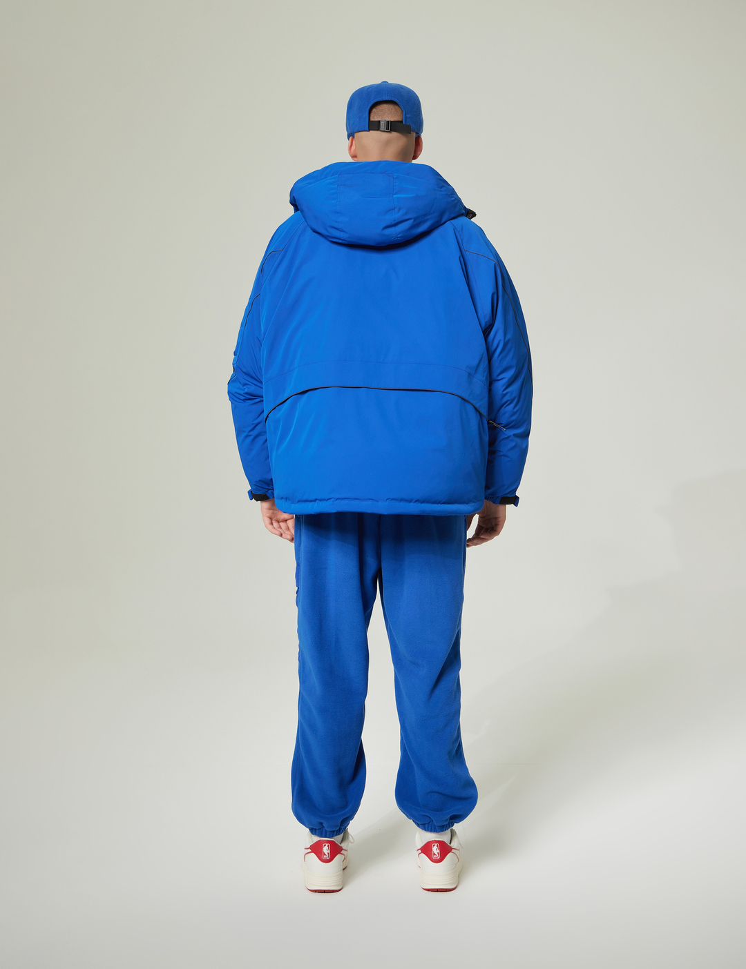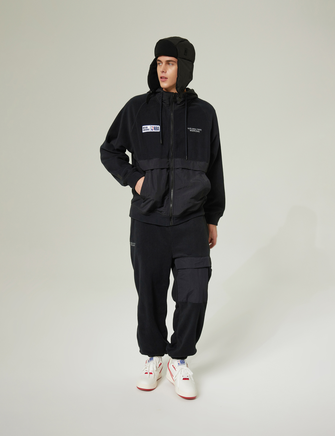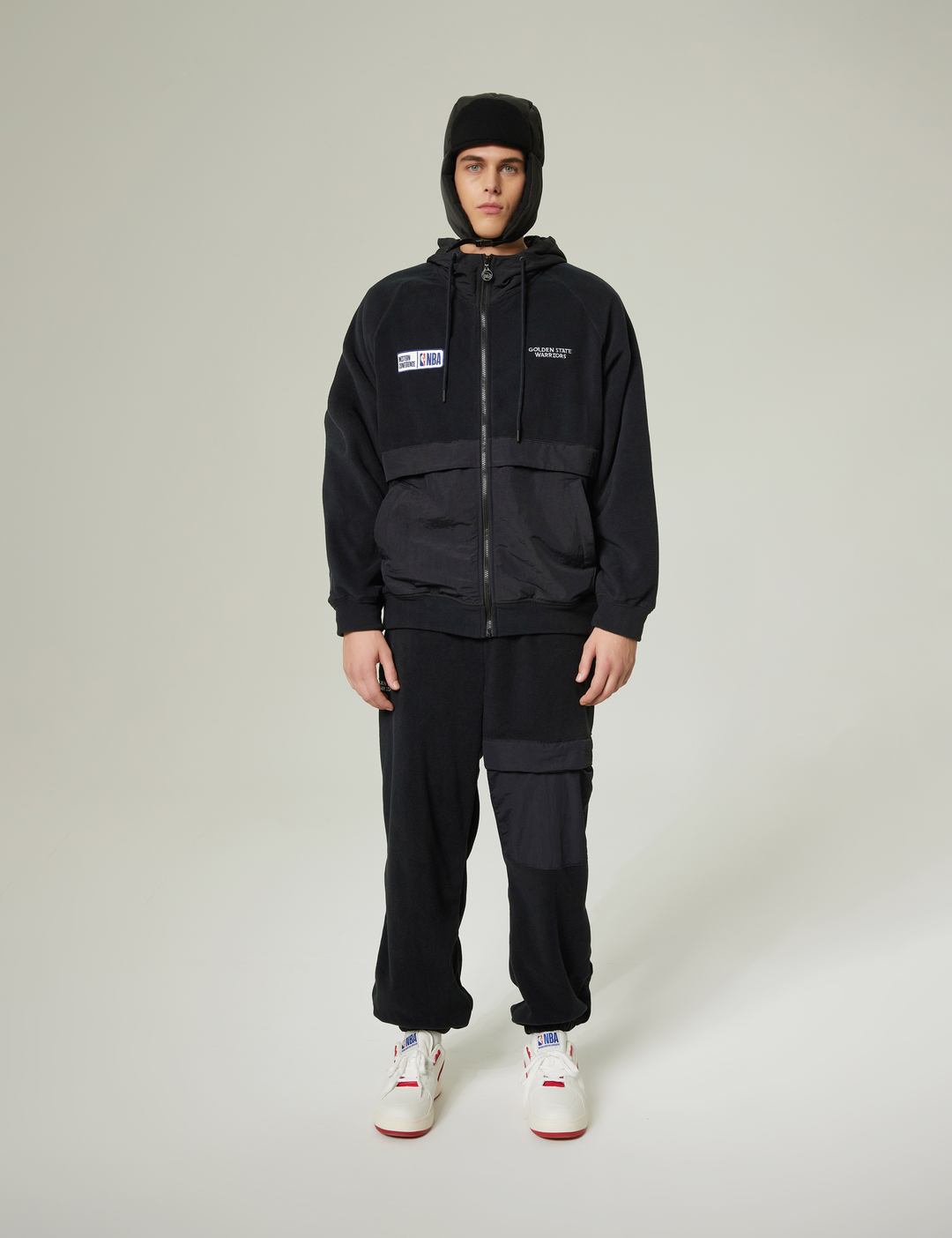 소프트한 터치감의 폴라폴리스 원단에 나일론 원단을 배색하여 캐주얼함과 트렌디함이 돋보이는 착장으로 연출 가능한 조거팬츠