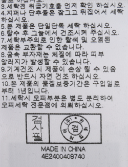 세탁방법 및 취급시 주의사항 본 제품은 손세탁 하십시오.(케어라벨참고)
