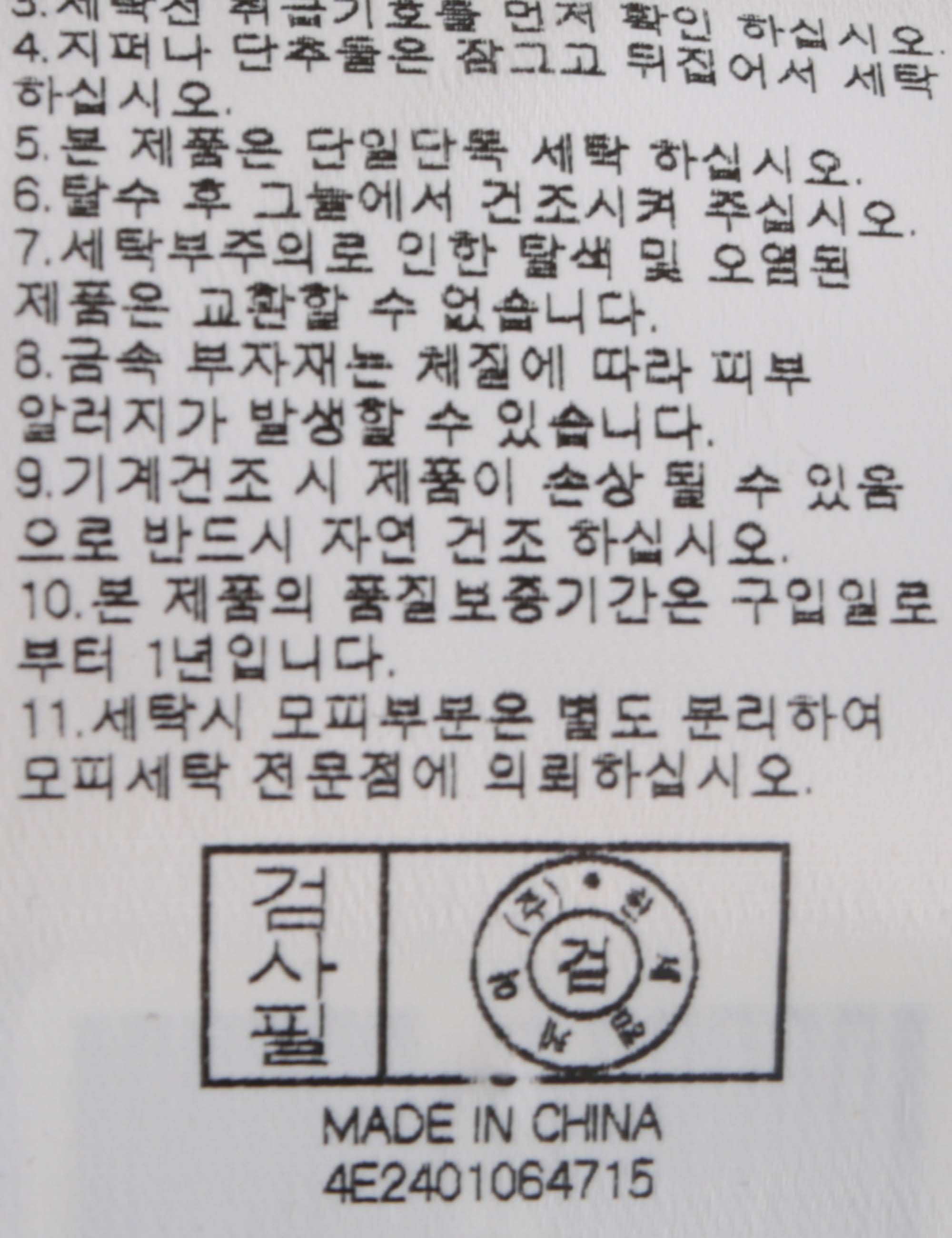 | 세탁방법 및 취급시 주의사항 | 본 제품은 손세탁 하십시오.(케어라벨참고) |