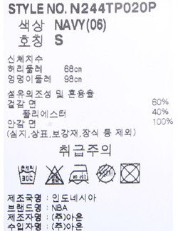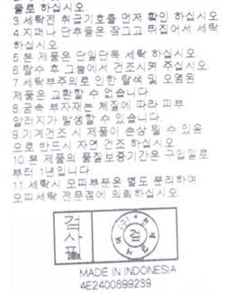 세탁방법 및 취급시 주의사항 본 제품은 손세탁 하십시오.(케어라벨참고)