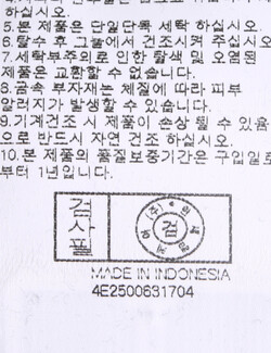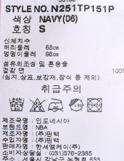 | 세탁방법 및 취급시 주의사항 | 본 제품은 손세탁 하십시오.(케어라벨참고) |