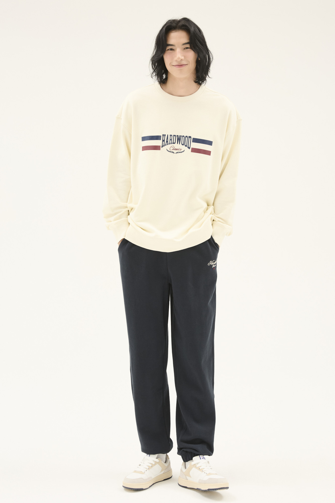 NBA의 레전드 장면을 보여주는 'HARDWOOD CLASSIC' 라인의 조거 스타일로 클래식한 아트웍과 골드컬러의 부자재가 특징