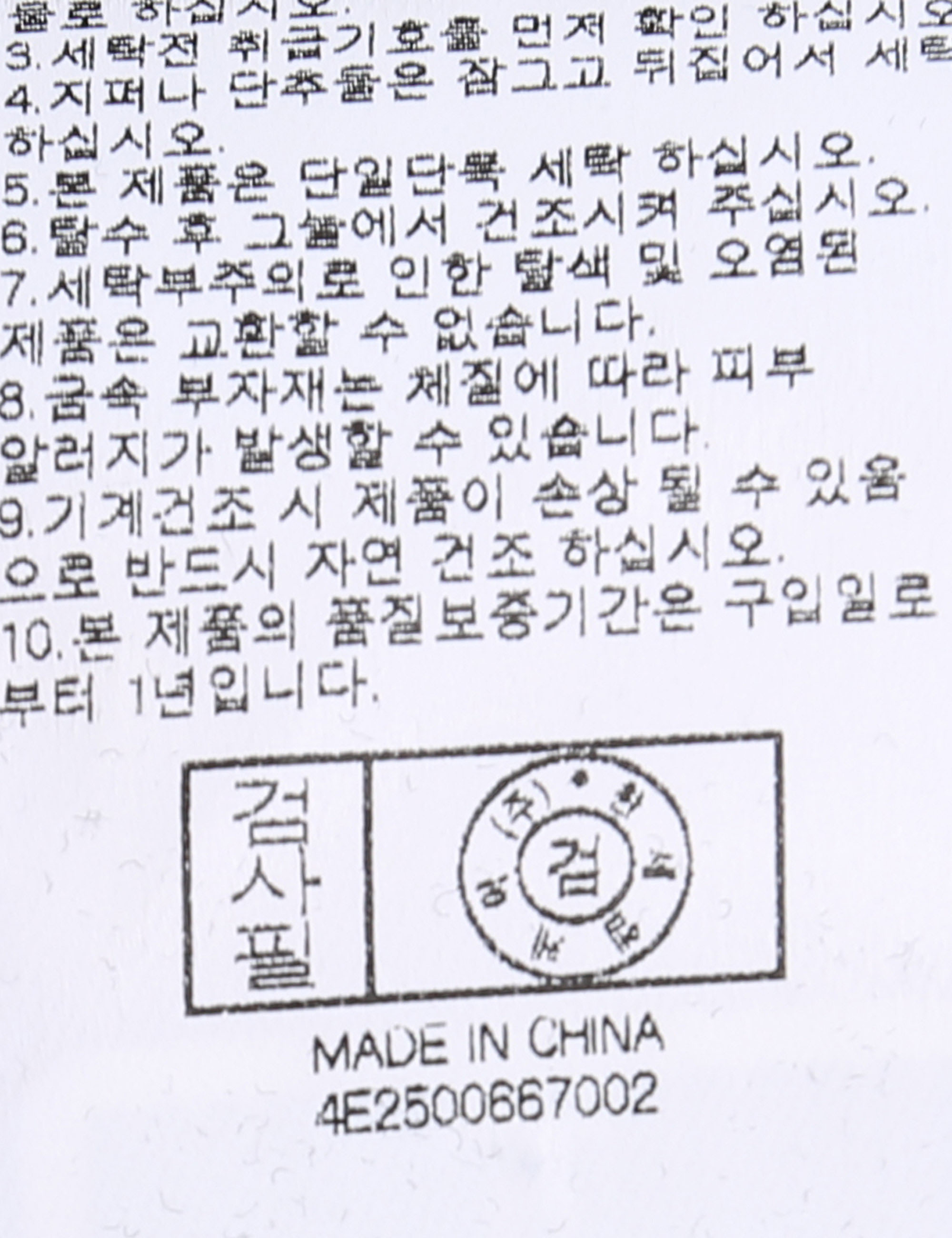 | 세탁방법 및 취급시 주의사항 | 본 제품은 손세탁 하십시오.(케어라벨참고) |