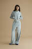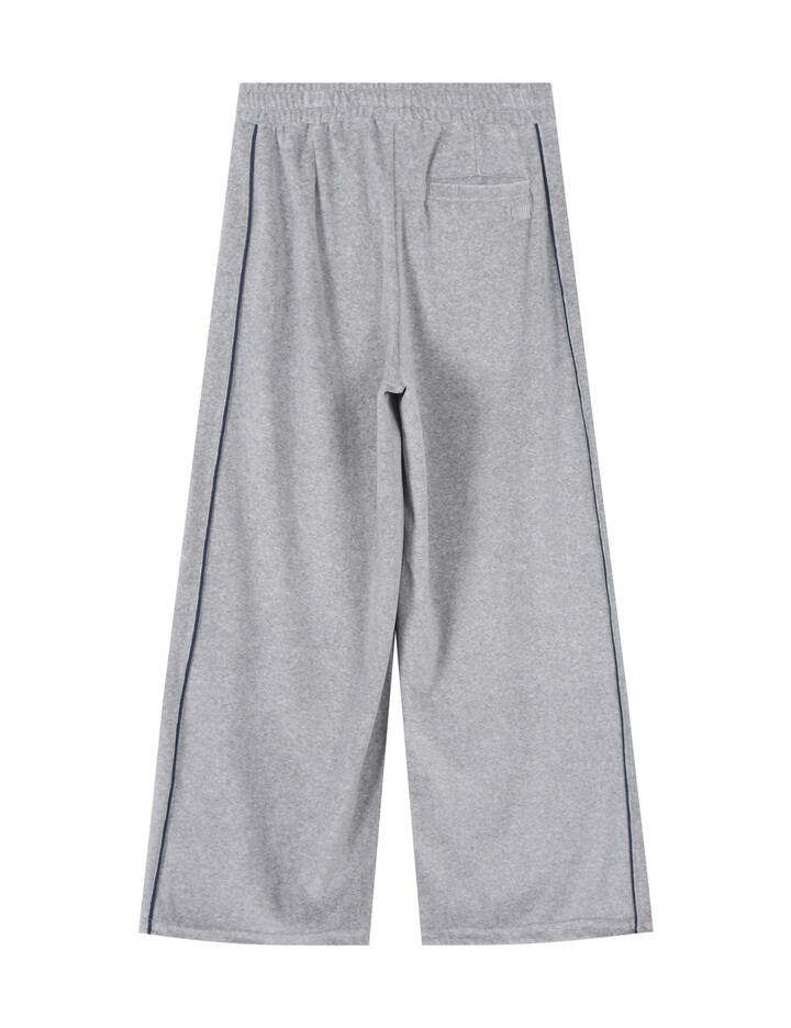 - 바지 사이드 라인에 파이핑 디테일로 포인트를 주었고 밑단에는 스트링을 추가하여 취향에 맞게 실루엣을 연출 할 수 있음