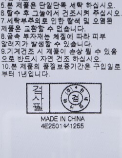 | 세탁방법 및 취급시 주의사항 | 본 제품은 손세탁 하십시오.(케어라벨참고) |