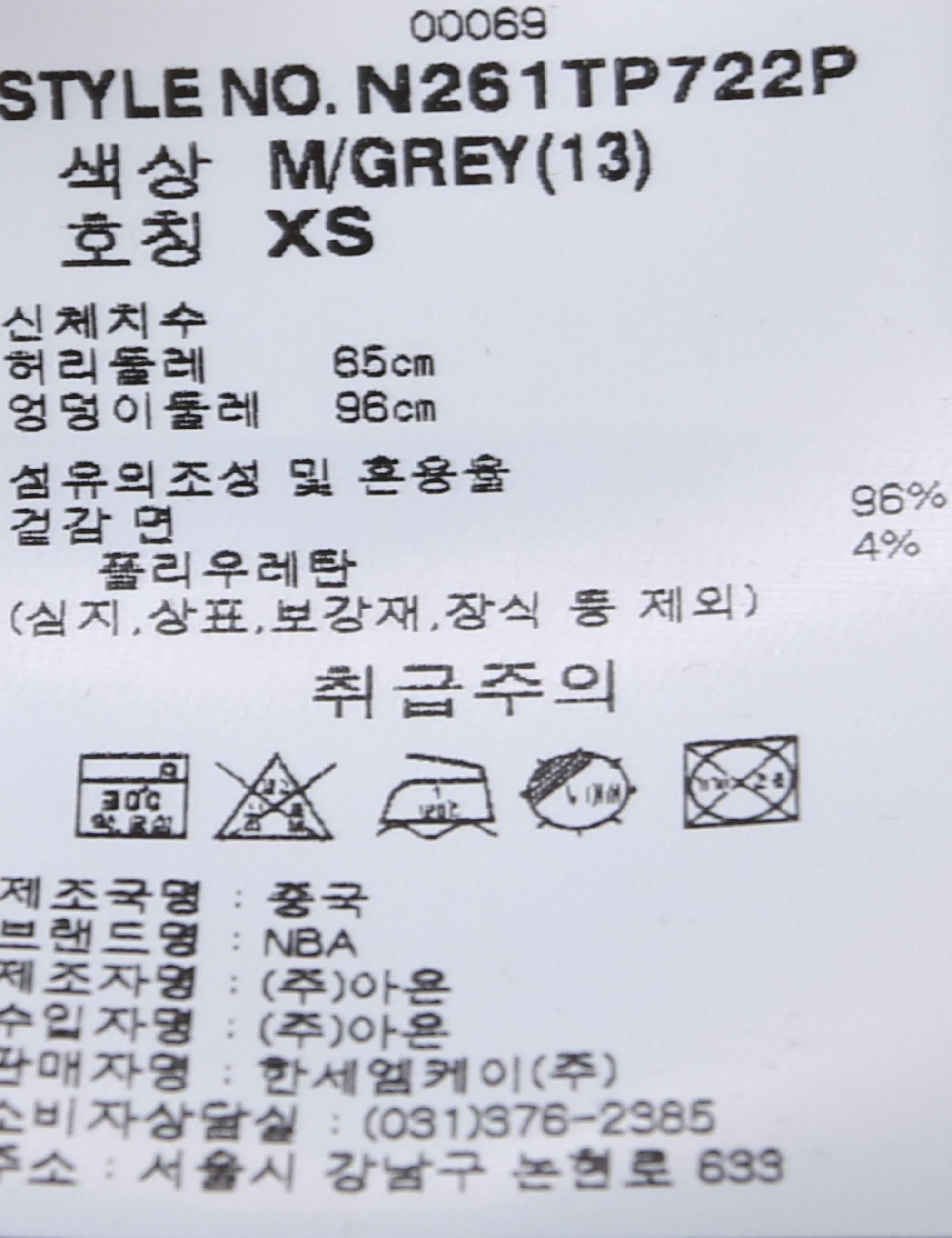 제품소재 [겉감]면96% 폴리우레탄4%