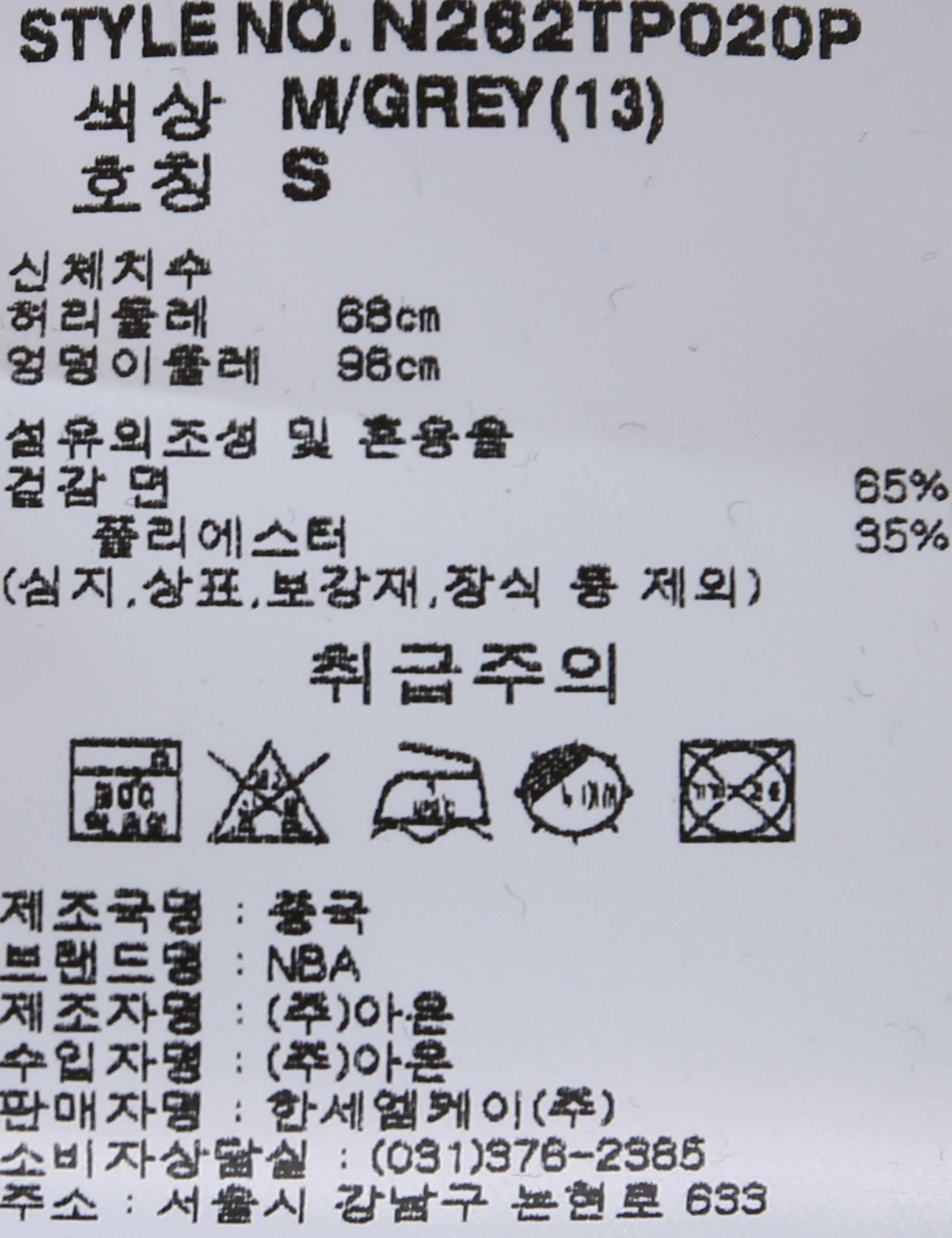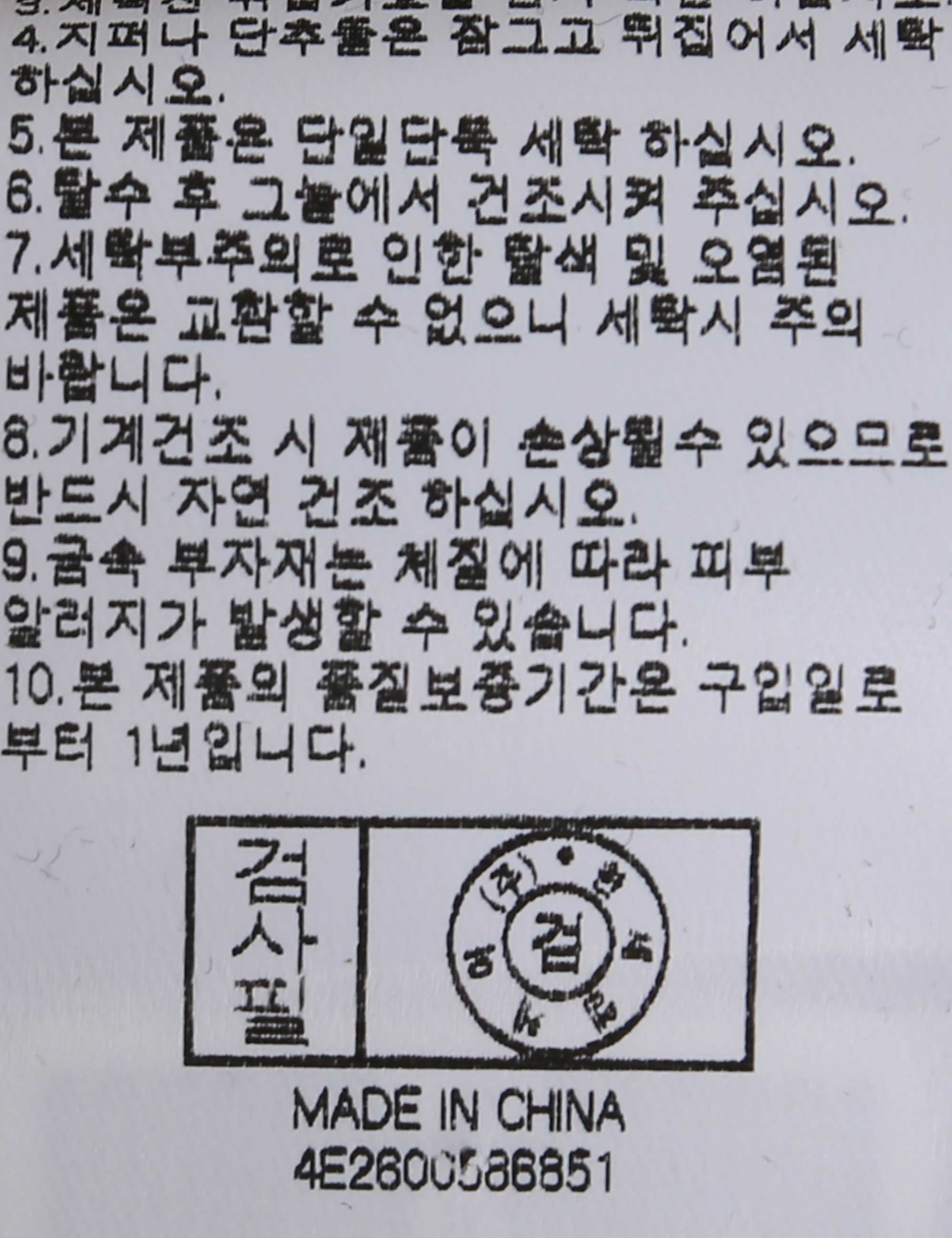 | 세탁방법 및 취급시 주의사항 | 중성세제로 단 시간내에 세탁하십시오.(케어라벨참고) |
