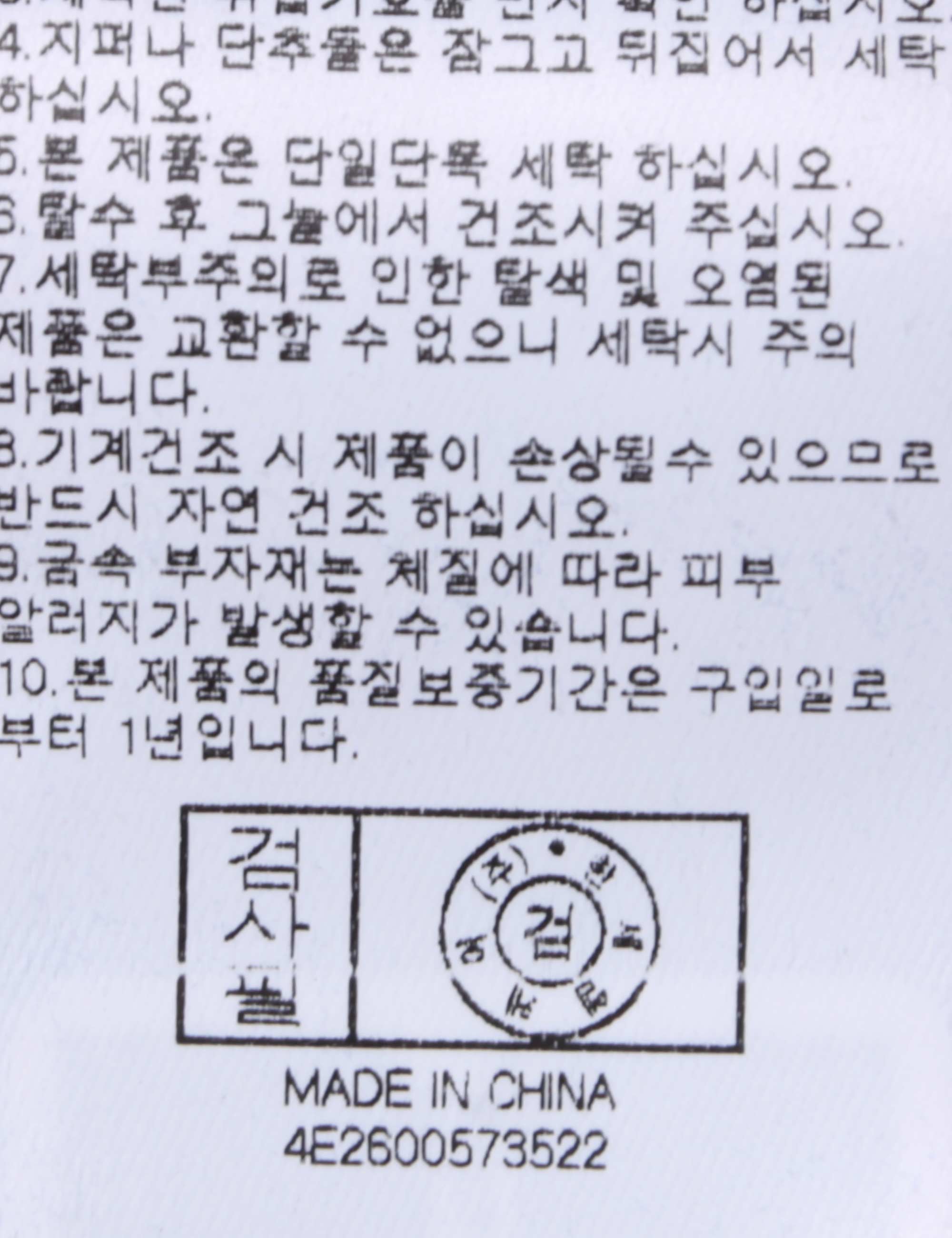| 세탁방법 및 취급시 주의사항 | 중성세제로 단 시간내에 세탁하십시오.(케어라벨참고) |