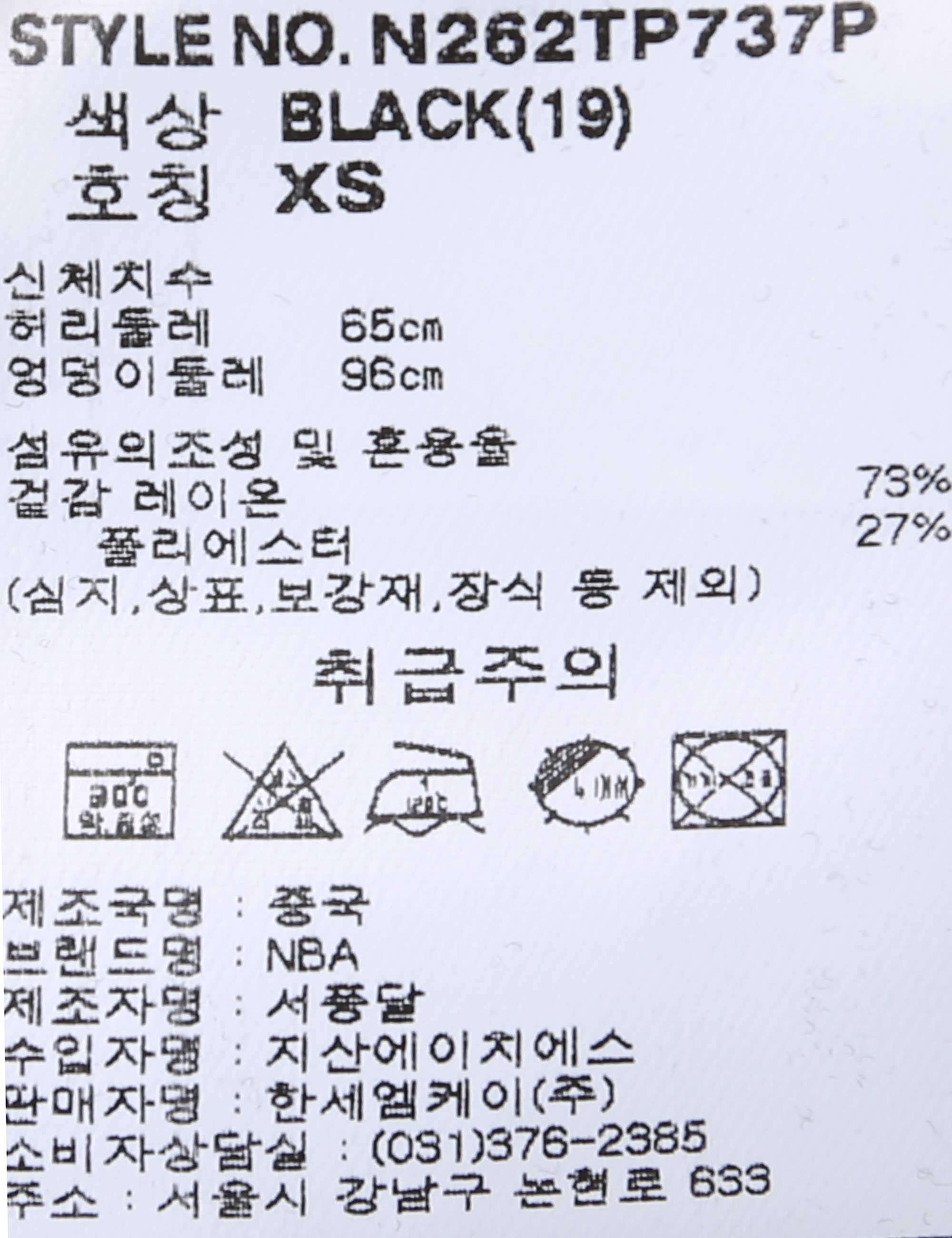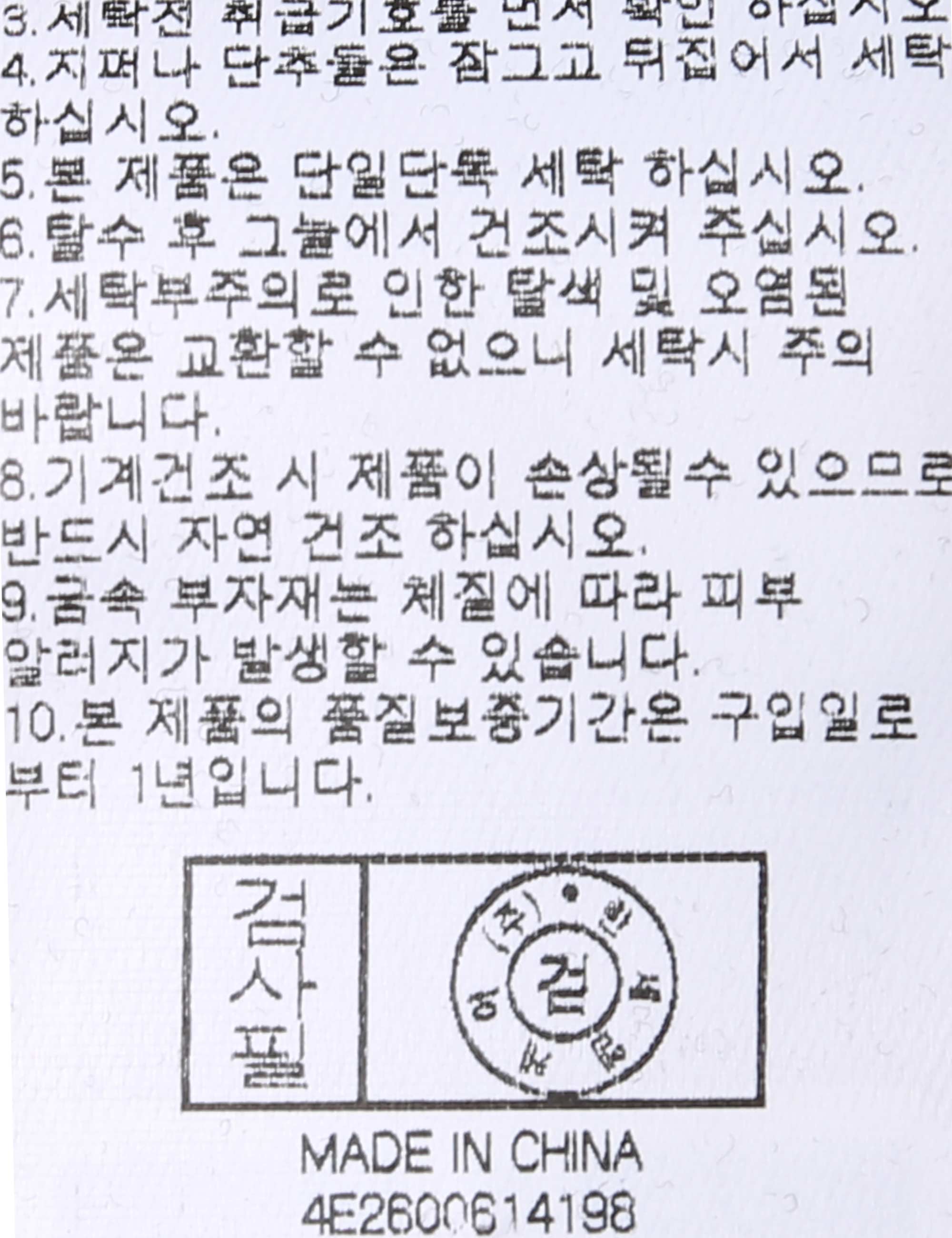 | 세탁방법 및 취급시 주의사항 | 중성세제로 단 시간내에 세탁하십시오.(케어라벨참고) |