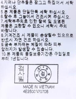 | 세탁방법 및 취급시 주의사항 |