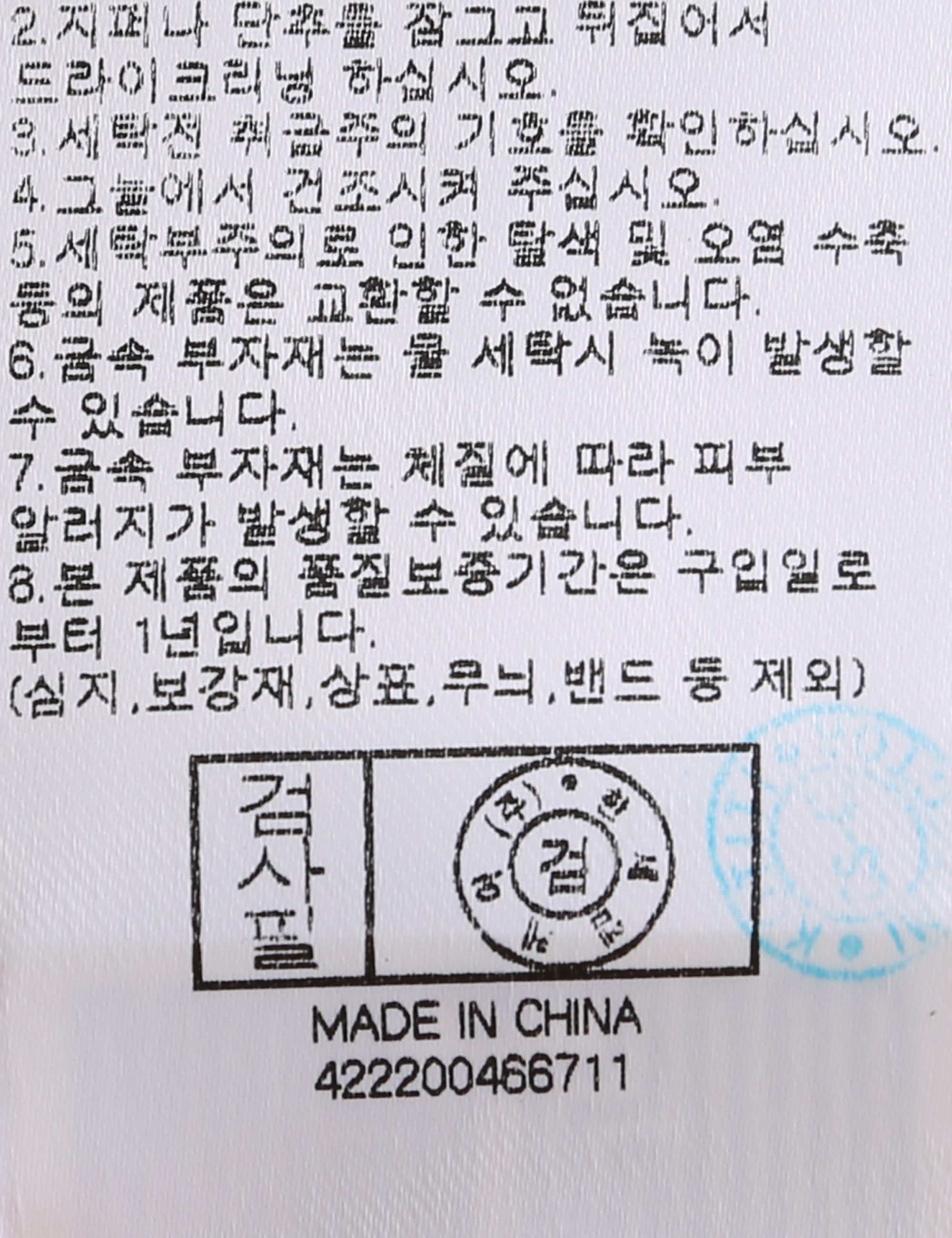 | 세탁방법 및 취급시 주의사항 | 본 제품은 반드시 드라이크리닝 하십시오.(세탁라벨참고) |
