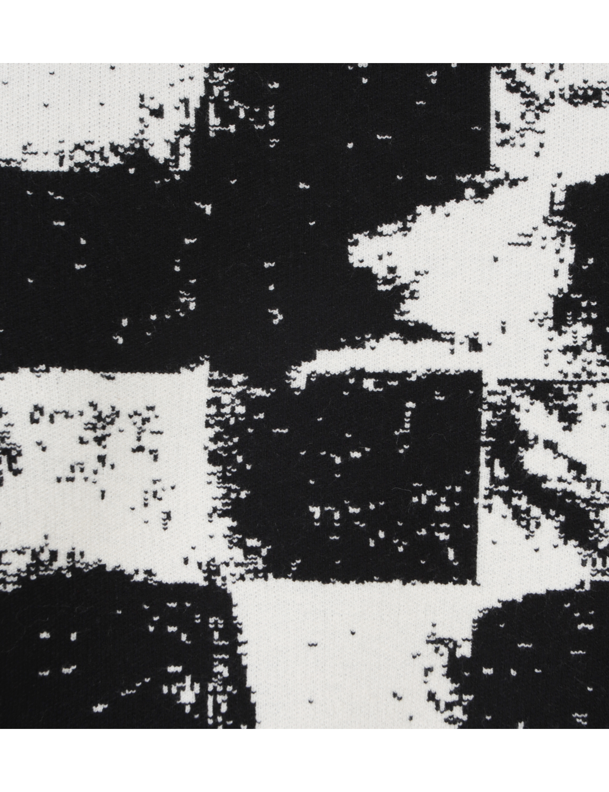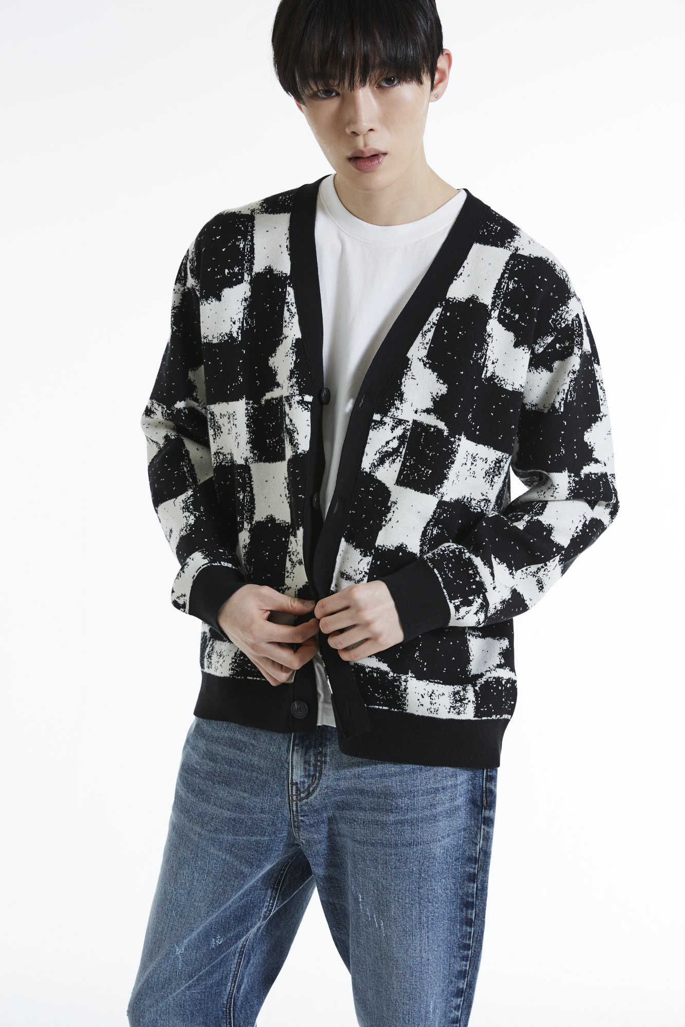 * 체커보드 변형 아트웍 그래픽을 포인트를 준 와이넥 가디건