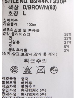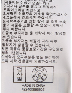 | 세탁방법 및 취급시 주의사항 | 본 제품은 반드시 드라이크리닝 하십시오.(세탁라벨참고) |