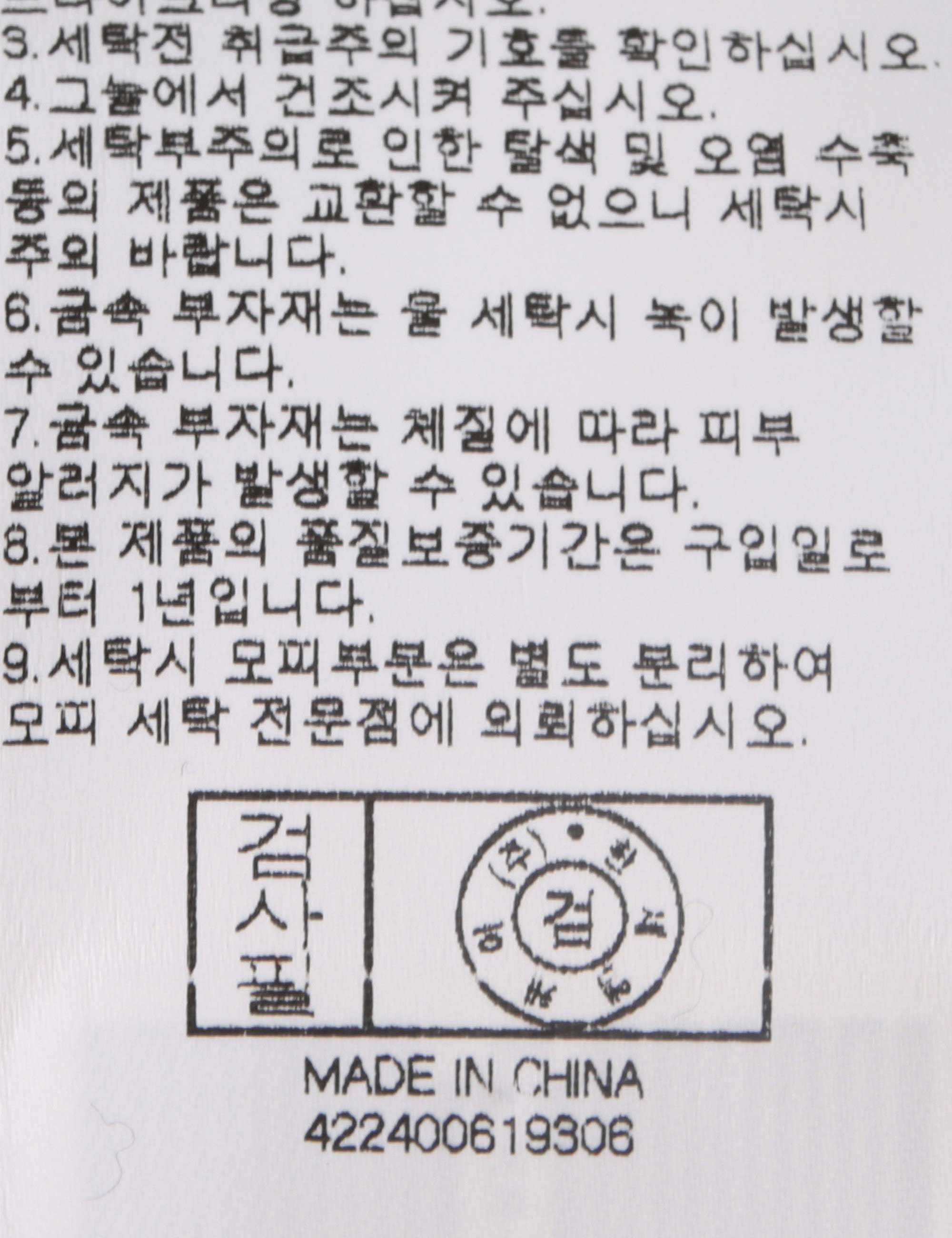 세탁방법 및 취급시 주의사항 본 제품은 반드시 드라이크리닝 하십시오.(세탁라벨참고)