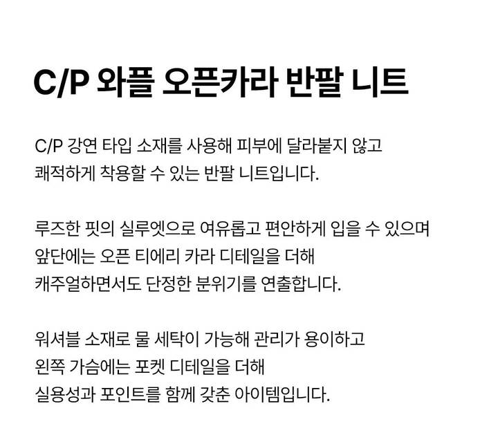 | 상품명 | C/P 와플 오픈카라 반팔 니트(B252KT304P) |