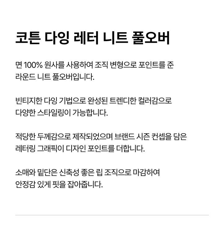 | 상품명 | 코튼 다잉 레터 니트 풀오버(B254KT203P) |