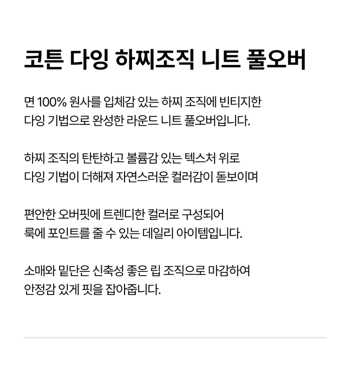 | 상품명 | 코튼 다잉 하찌조직 니트 풀오버(B254KT204P) |