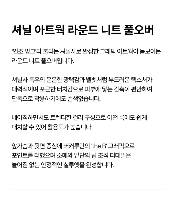 | 상품명 | [the B]셔닐 아트웍 라운드 니트 풀오버(B261KT295P) |