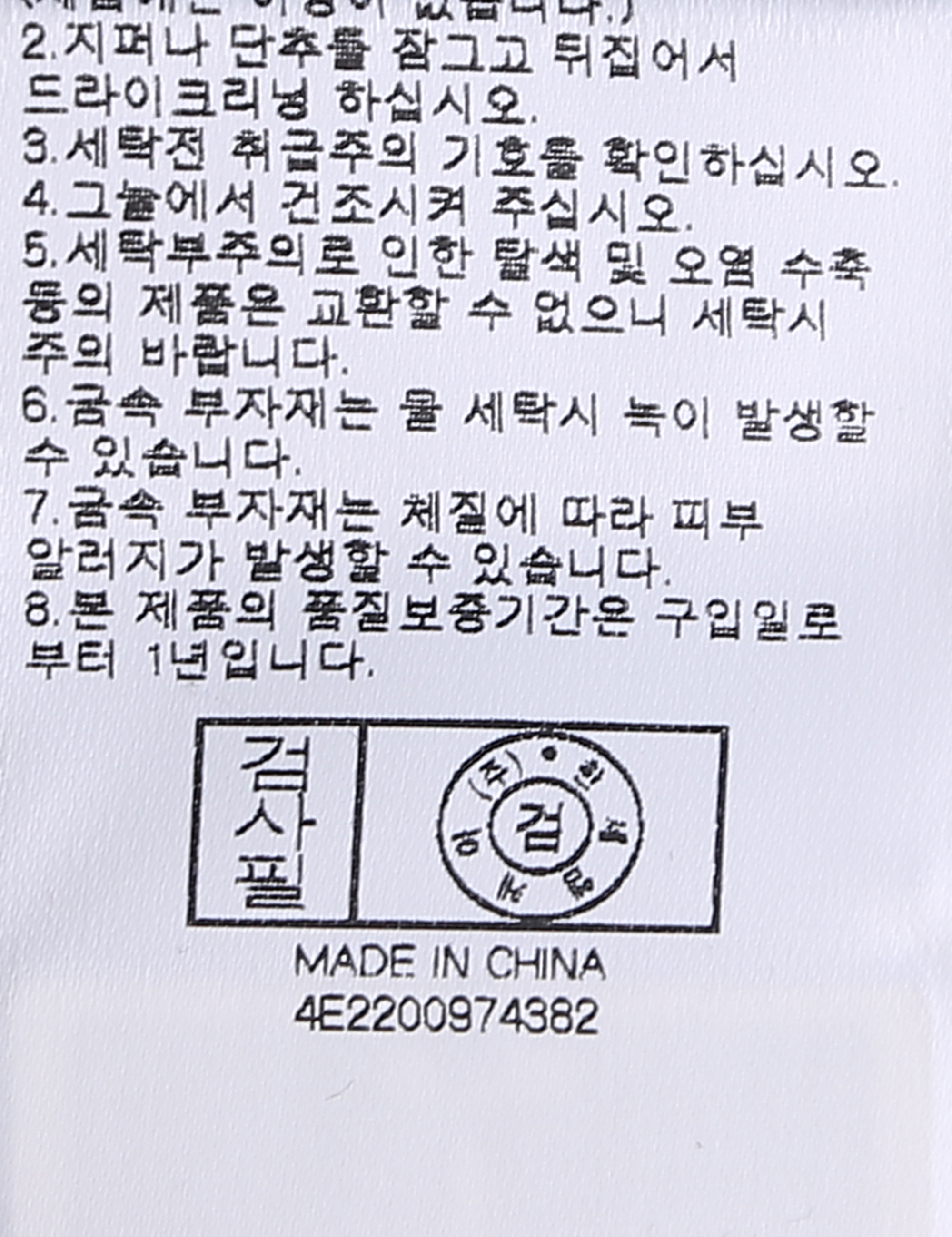 세탁방법 및 취급시 주의사항 본 제품은 반드시 드라이크리닝 하십시오.(세탁라벨참고)
