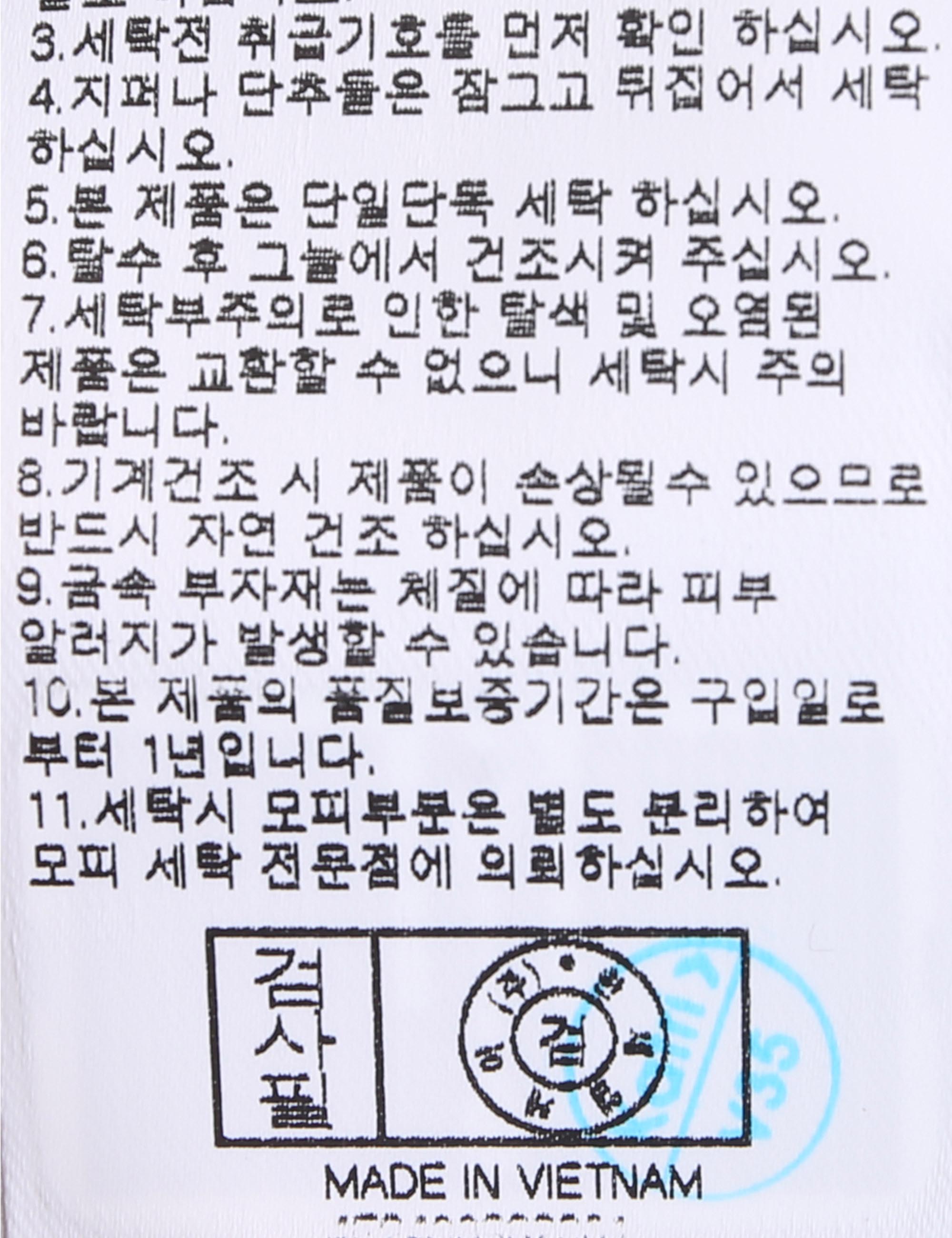 | 세탁방법 및 취급시 주의사항 | 중성세제로 단 시간내에 세탁하십시오.(케어라벨참고) |