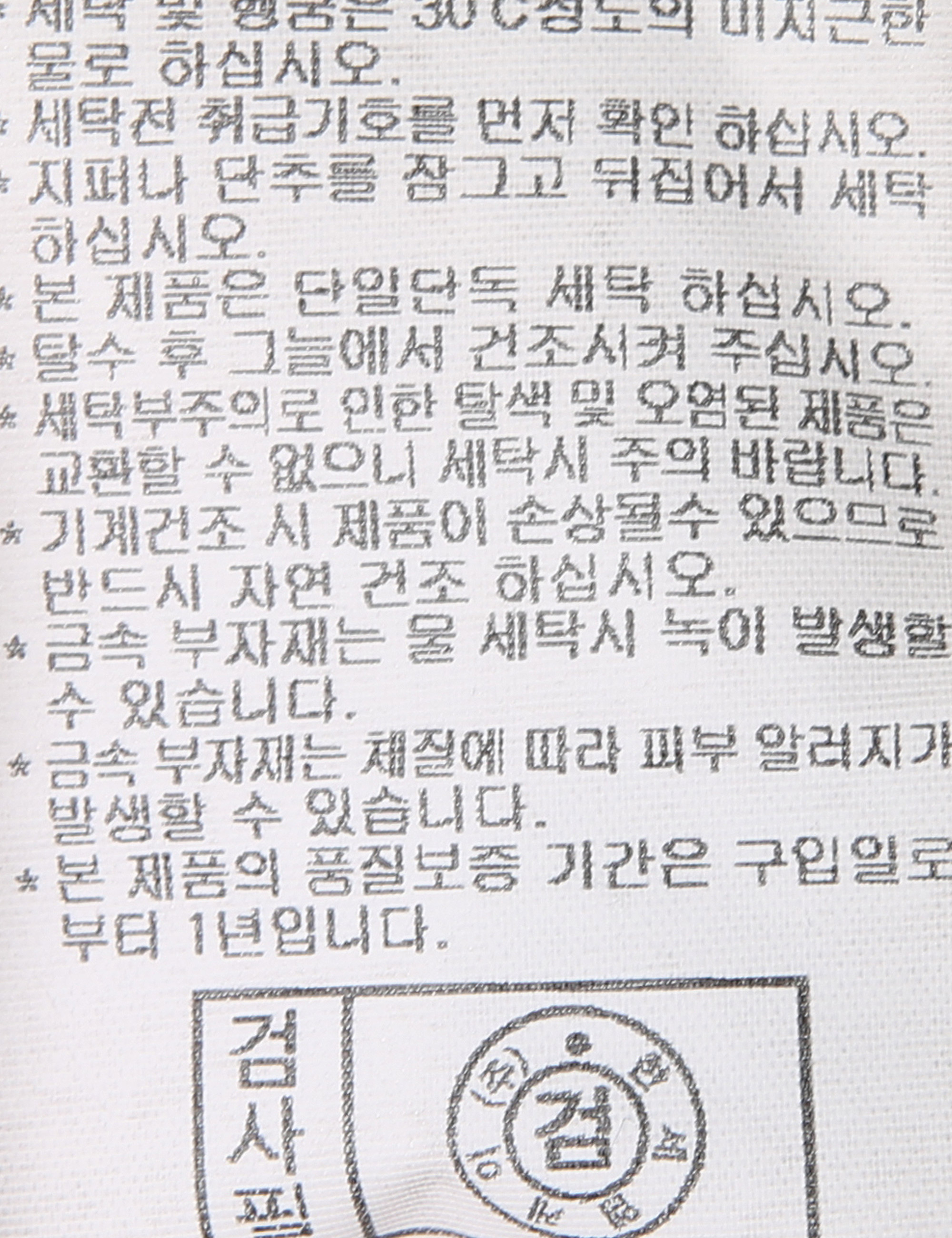 | 세탁방법 및 취급시 주의사항 | 중성세제로 단 시간내에 세탁하십시오.(케어라벨참고) |