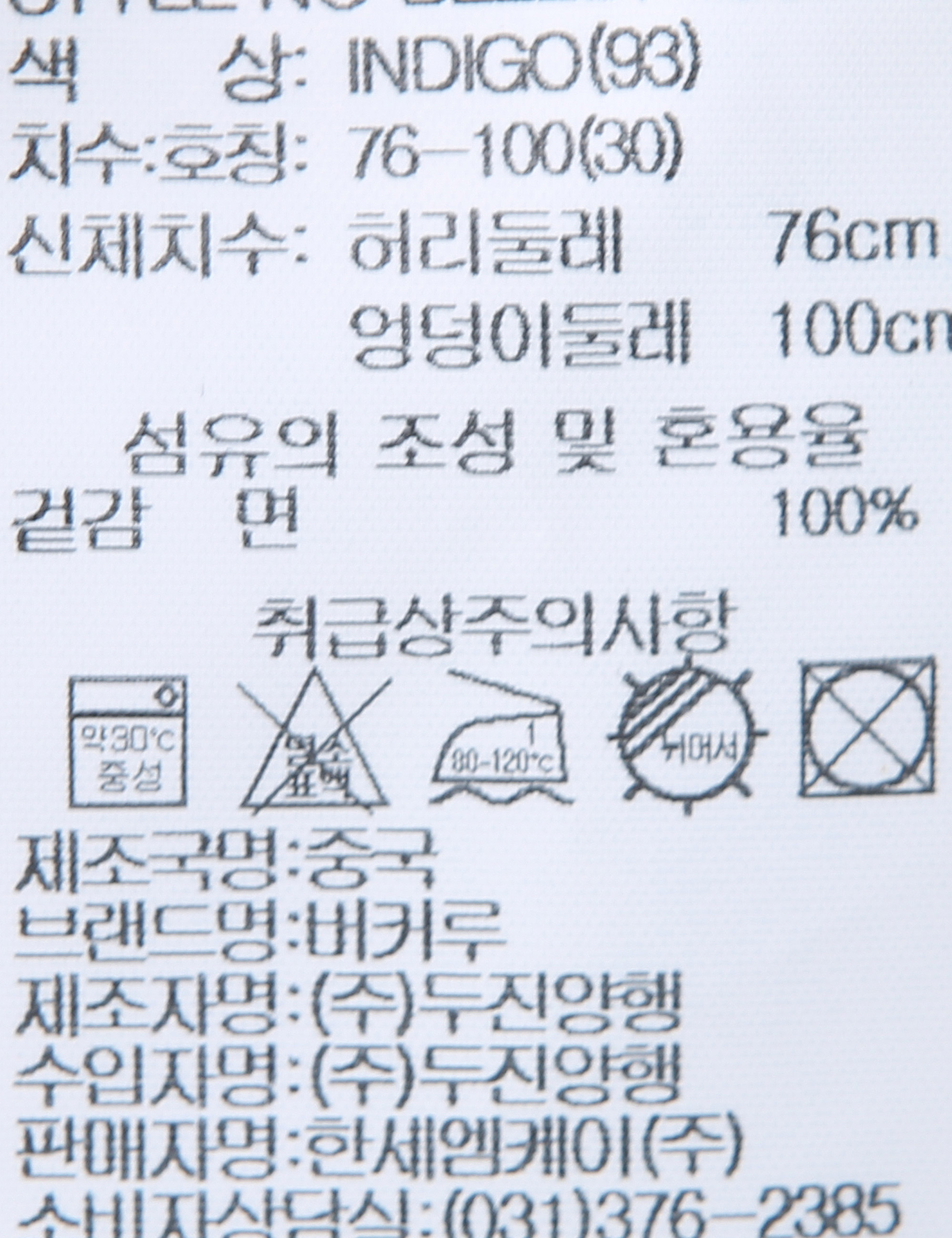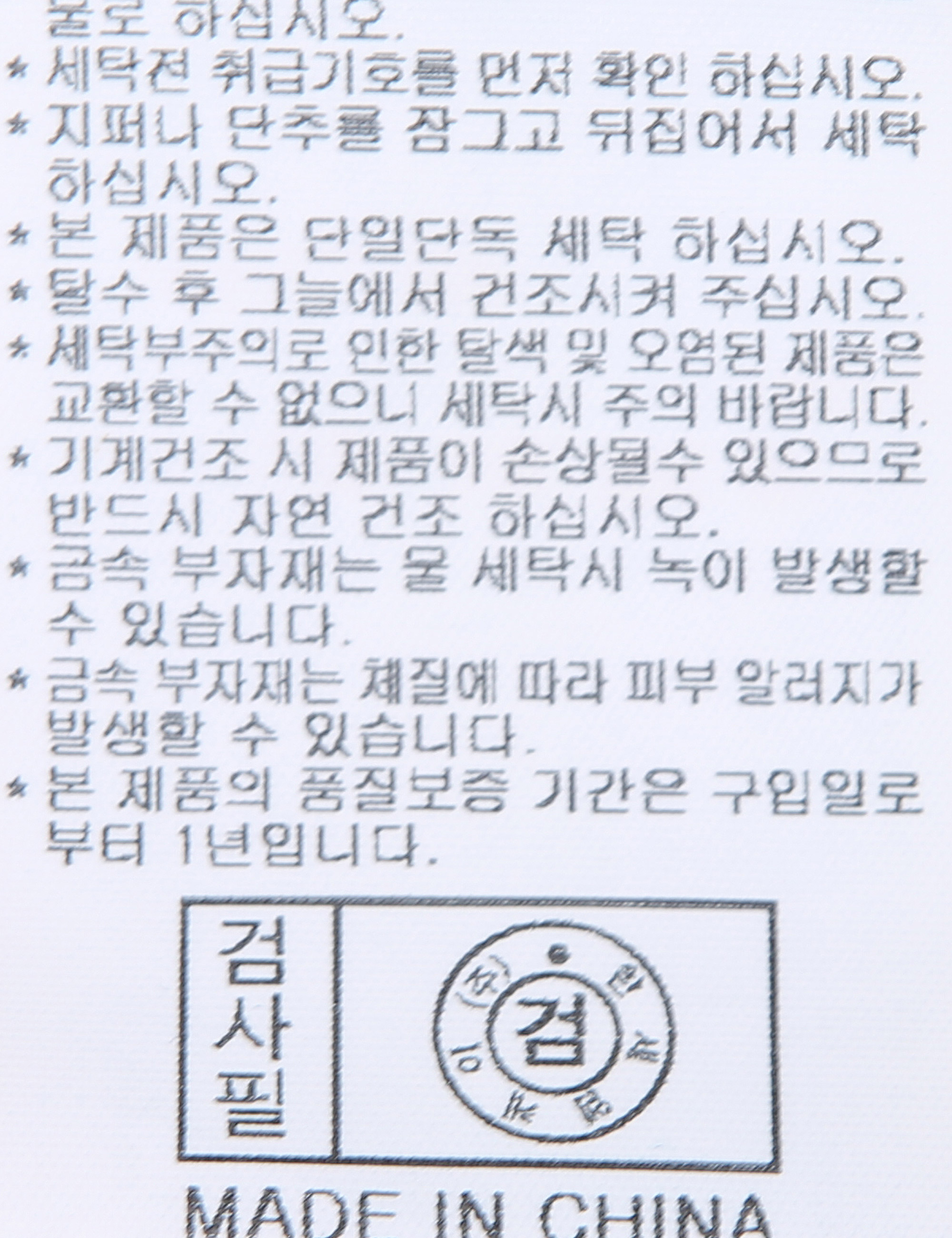 | 세탁방법 및 취급시 주의사항 | 중성세제로 단 시간내에 세탁하십시오.(케어라벨참고) |