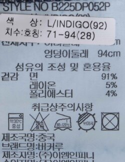 | 세탁방법 및 취급시 주의사항 | 중성세제로 단 시간내에 세탁하십시오.(케어라벨참고) |