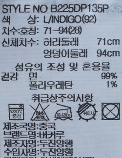 세탁방법 및 취급시 주의사항 중성세제로 단 시간내에 세탁하십시오.(케어라벨참고)
