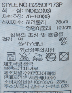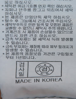 | 세탁방법 및 취급시 주의사항 | 중성세제로 단 시간내에 세탁하십시오.(케어라벨참고) |