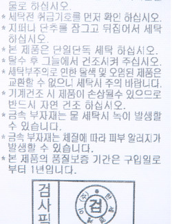| 세탁방법 및 취급시 주의사항 | 중성세제로 단 시간내에 세탁하십시오.(케어라벨참고) |