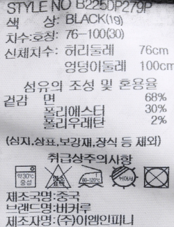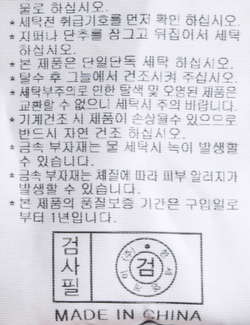 | 세탁방법 및 취급시 주의사항 | 중성세제로 단 시간내에 세탁하십시오.(케어라벨참고) |