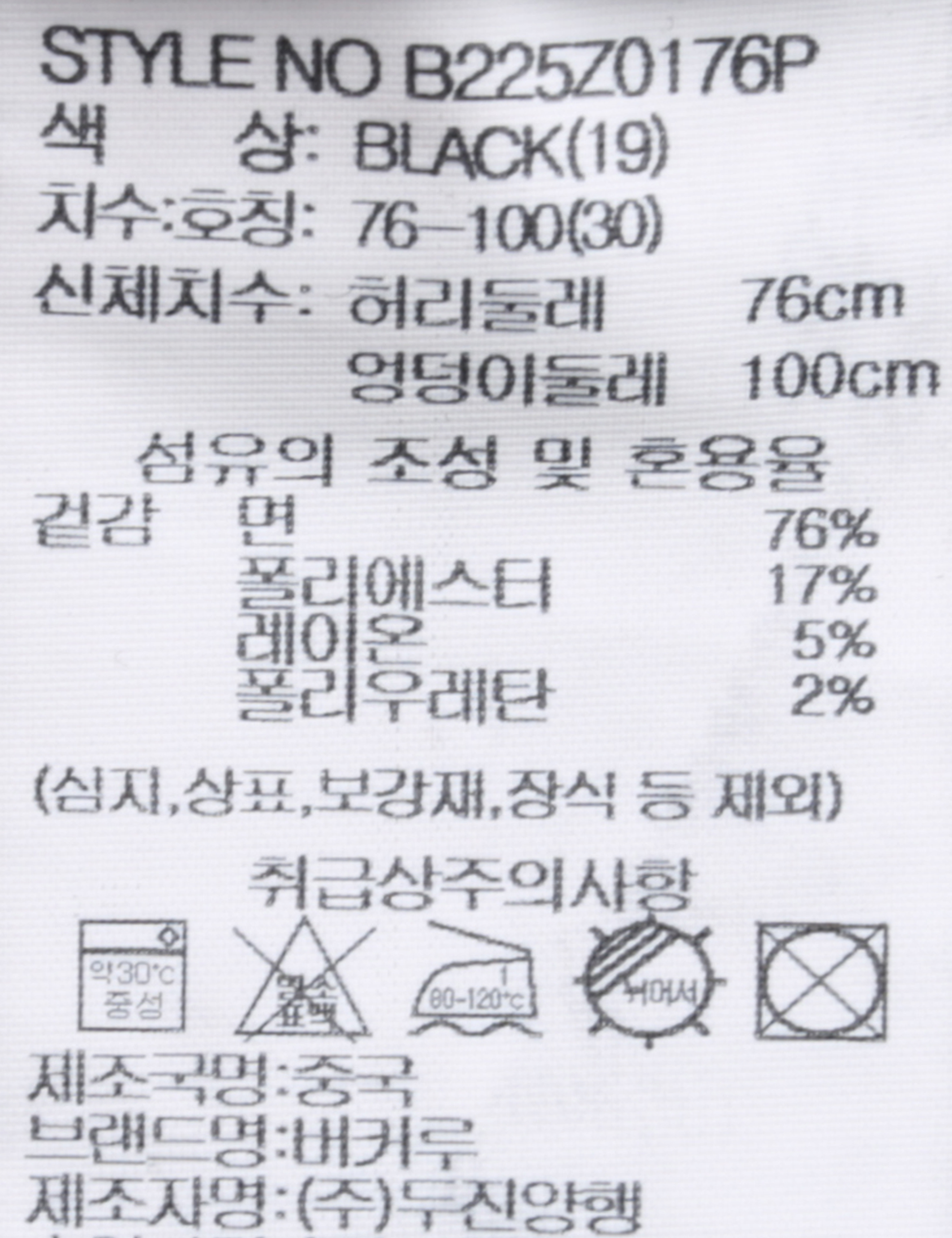브랜드 홈 바로가기| 제품소재 | [겉감]면76% 폴리에스터17% 레이온5% 폴리우레탄2% |