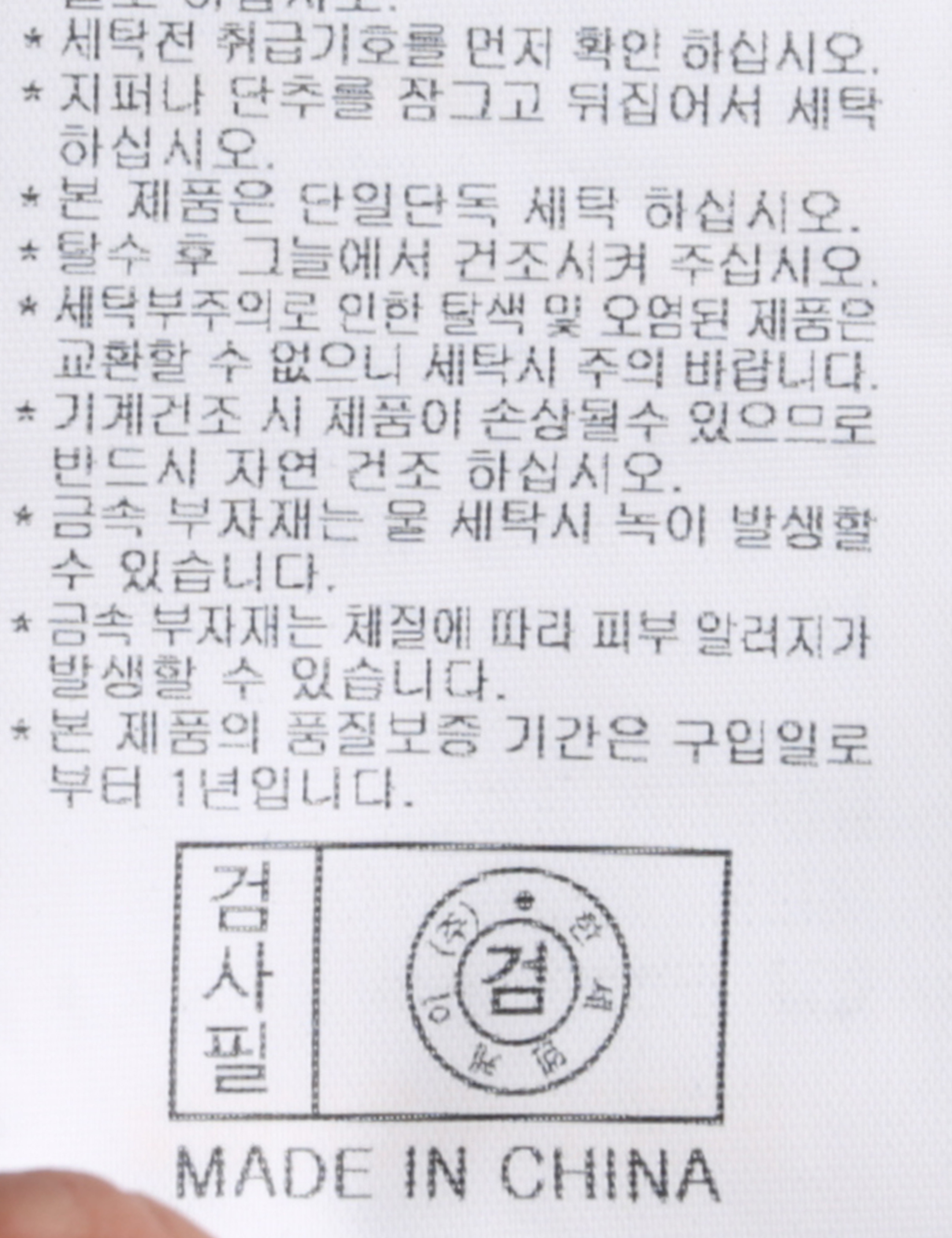 | 세탁방법 및 취급시 주의사항 | 중성세제로 단 시간내에 세탁하십시오.(케어라벨참고) |