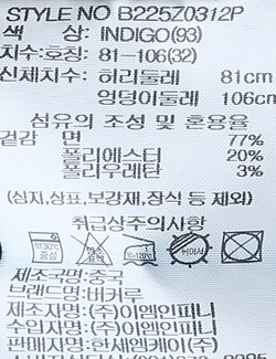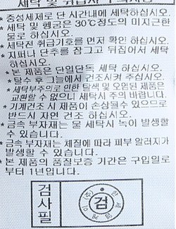 | 세탁방법 및 취급시 주의사항 | 중성세제로 단 시간내에 세탁하십시오.(케어라벨참고) |